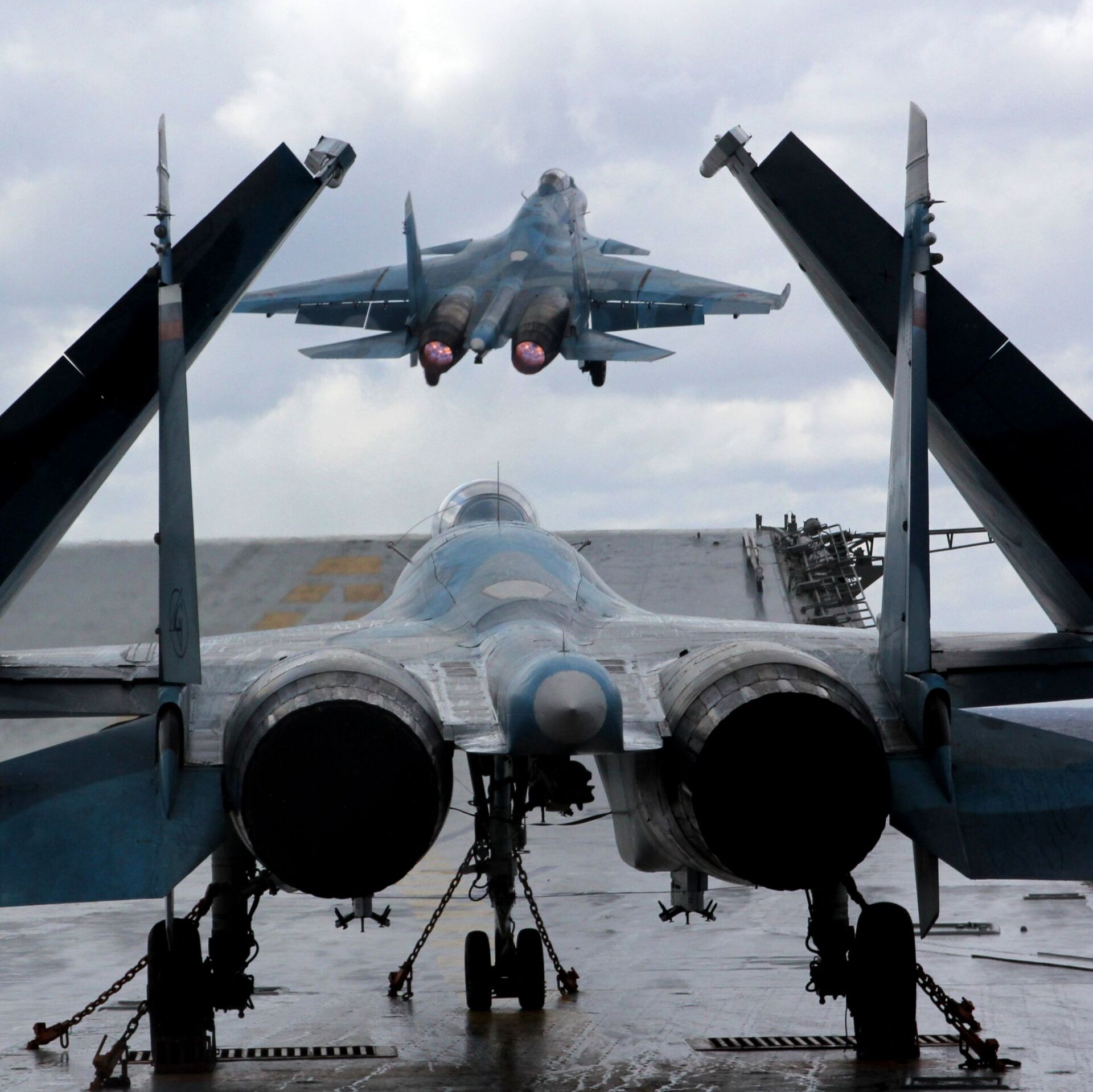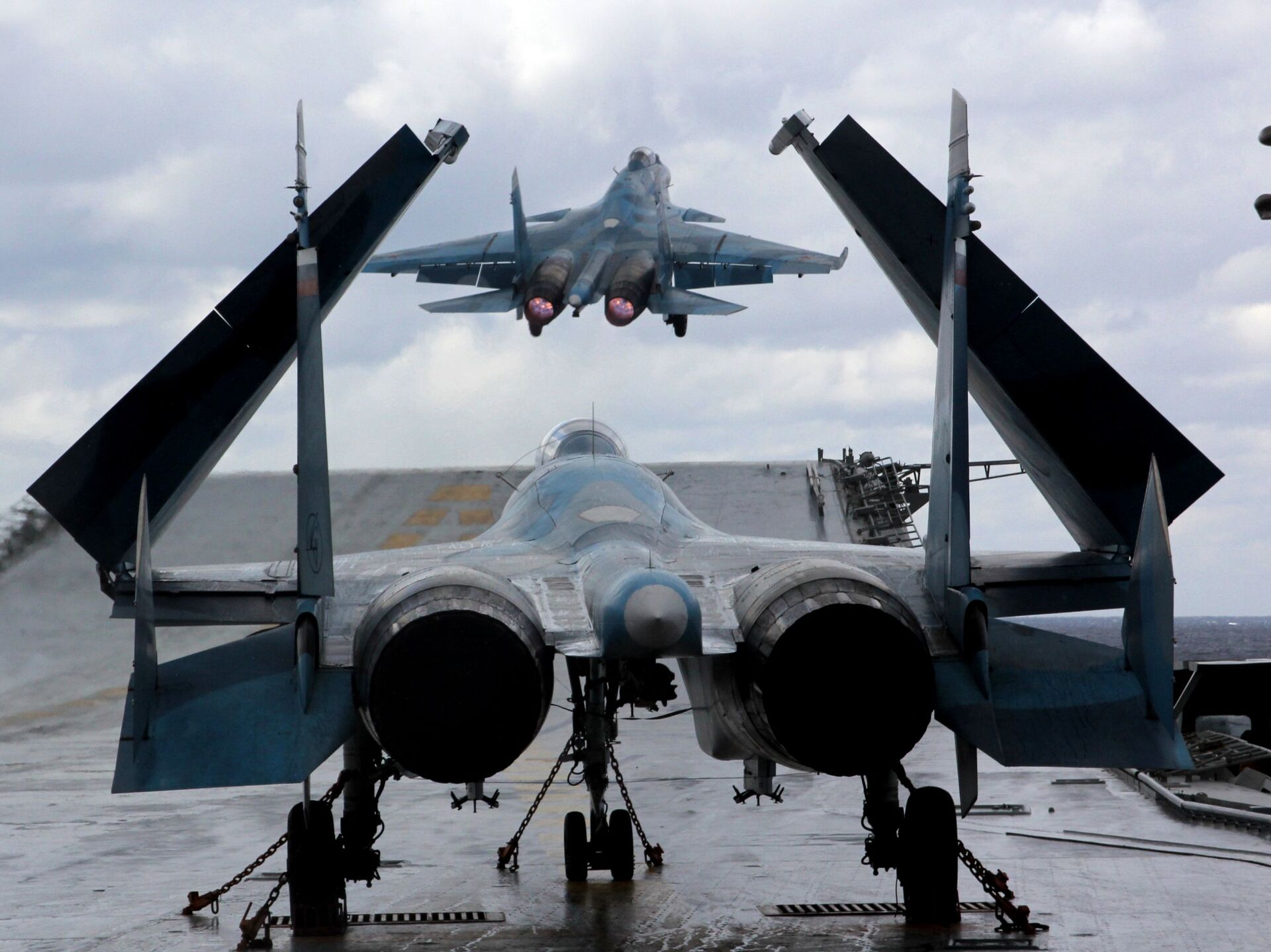 Ngày 14 tháng 11 và 4 tháng 12 năm ngoái trong thời gian tham gia hoạt động chiến sự tại Syria các chiến đấu cơ MiG-29K và Su-33 đã bị trượt khỏi boong tàu sân bay và rơi xuống biển.