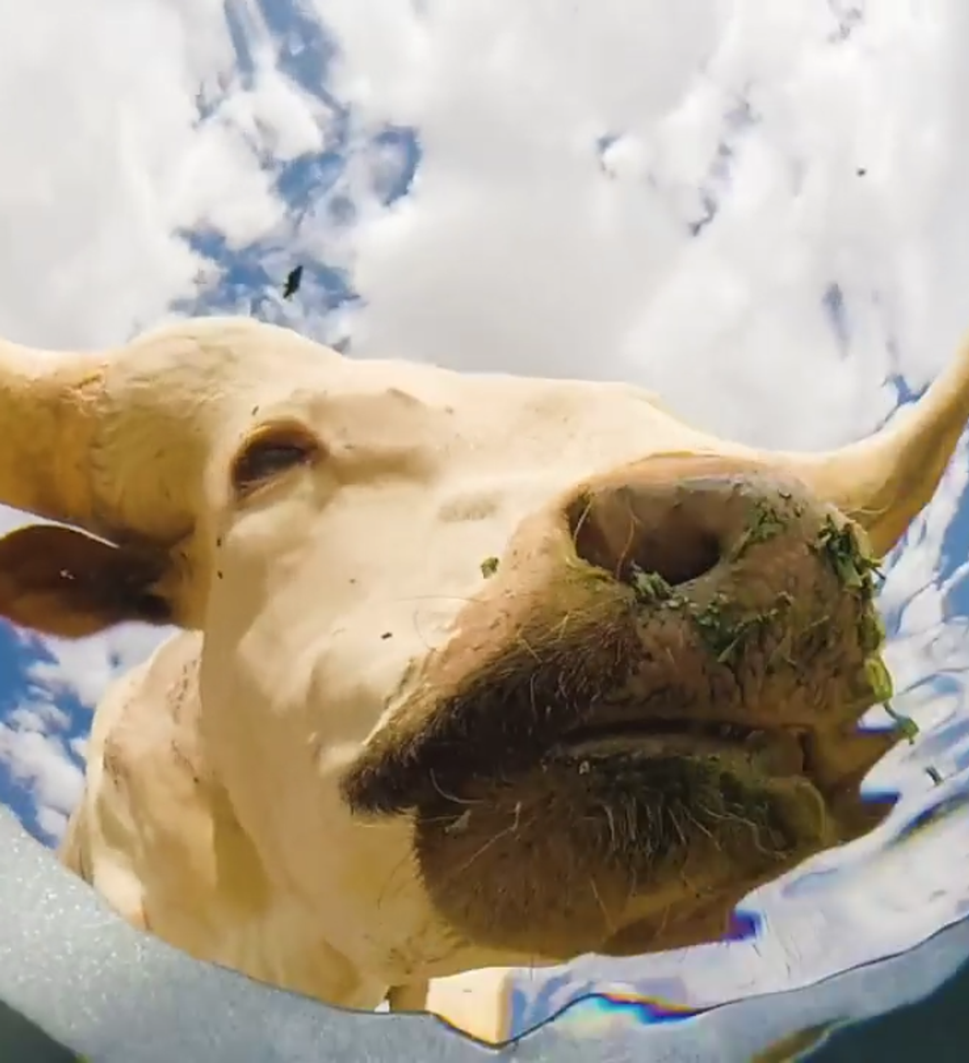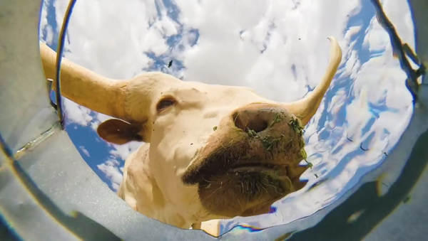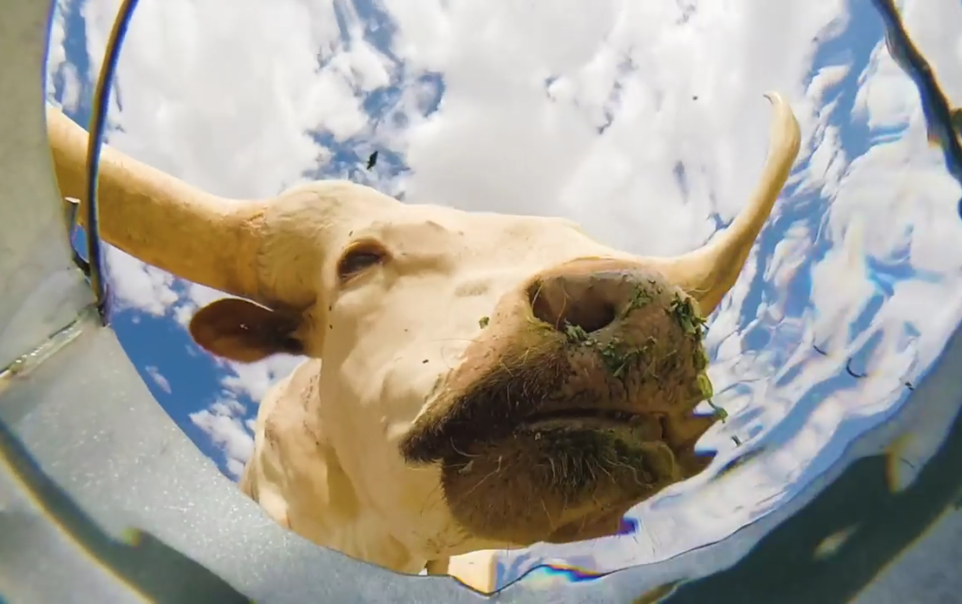 Những con vật uống nước từ xô. Nhìn từ dưới đáy (Video)