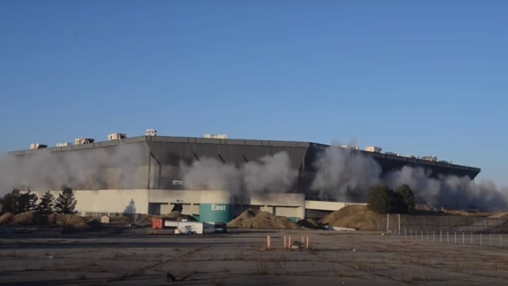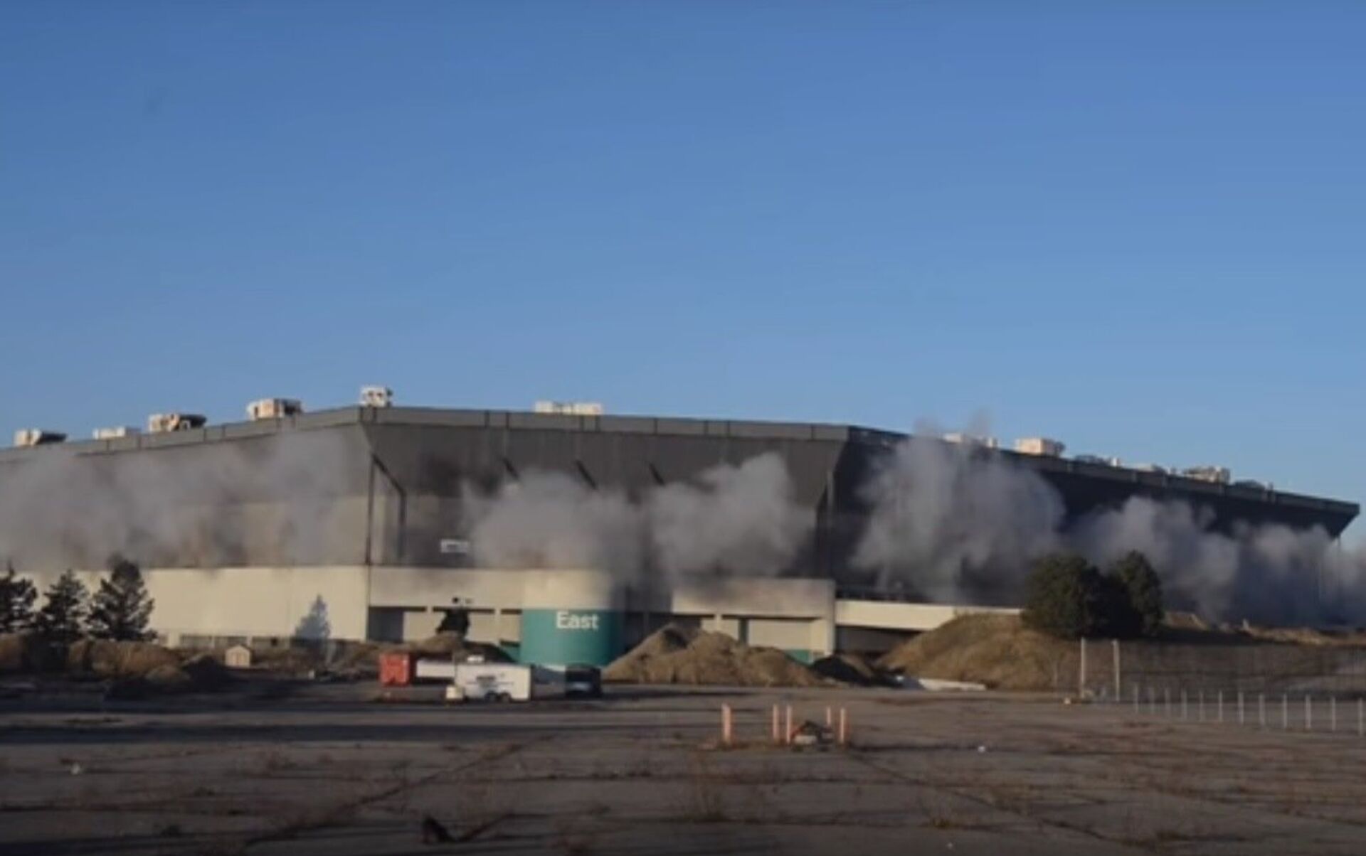 Vào Chủ Nhật, kết cấu bị phá hủy bằng chất nổ. Trong khi phá dỡ, những người dân địa phương tụ tập theo dõi. Vào thời gian đã định, vụ nổ đã xảy ra, nhưng sân vận động vẫn không hề hấn gì.