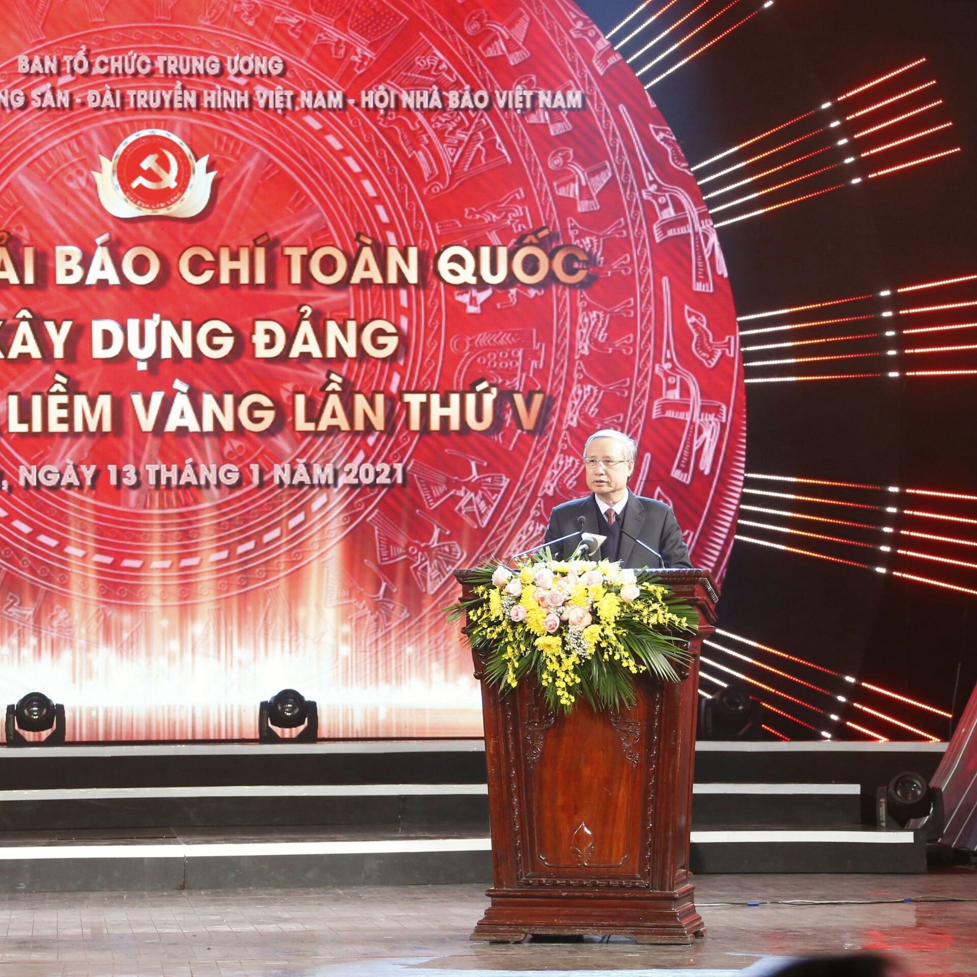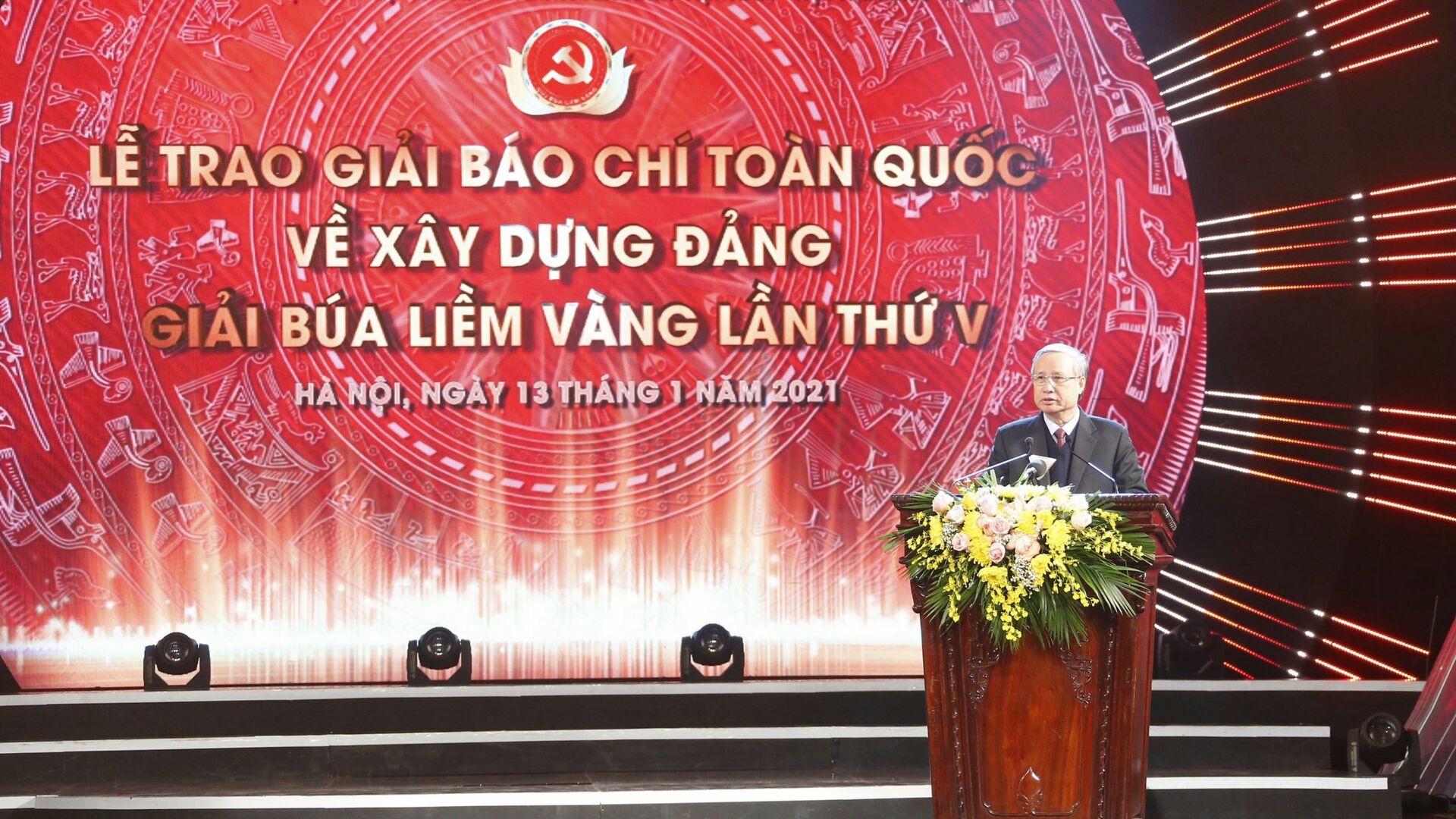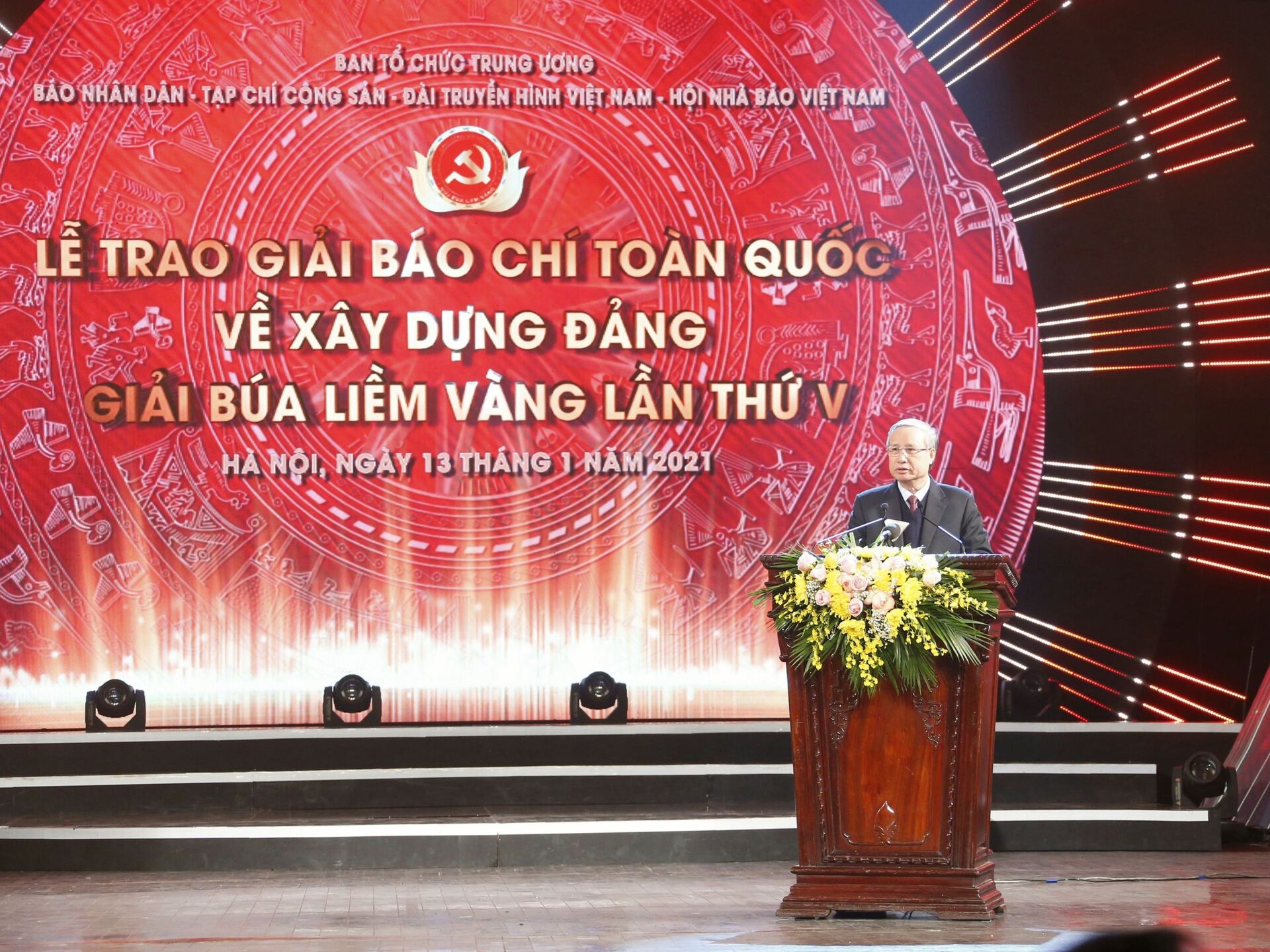 Tối ngày 13/01 tại Nhà Hát Lớn Hà Nội, đã diễn ra Lễ trao giải Báo chí toàn quốc về xây dựng Đảng (Búa liềm vàng) do Ban Tổ chức Trung ương chủ trì, phối hợp với Báo Nhân Dân, Tạp chí Cộng sản, Đài Truyền hình Việt Nam và Hội Nhà báo Việt Nam.