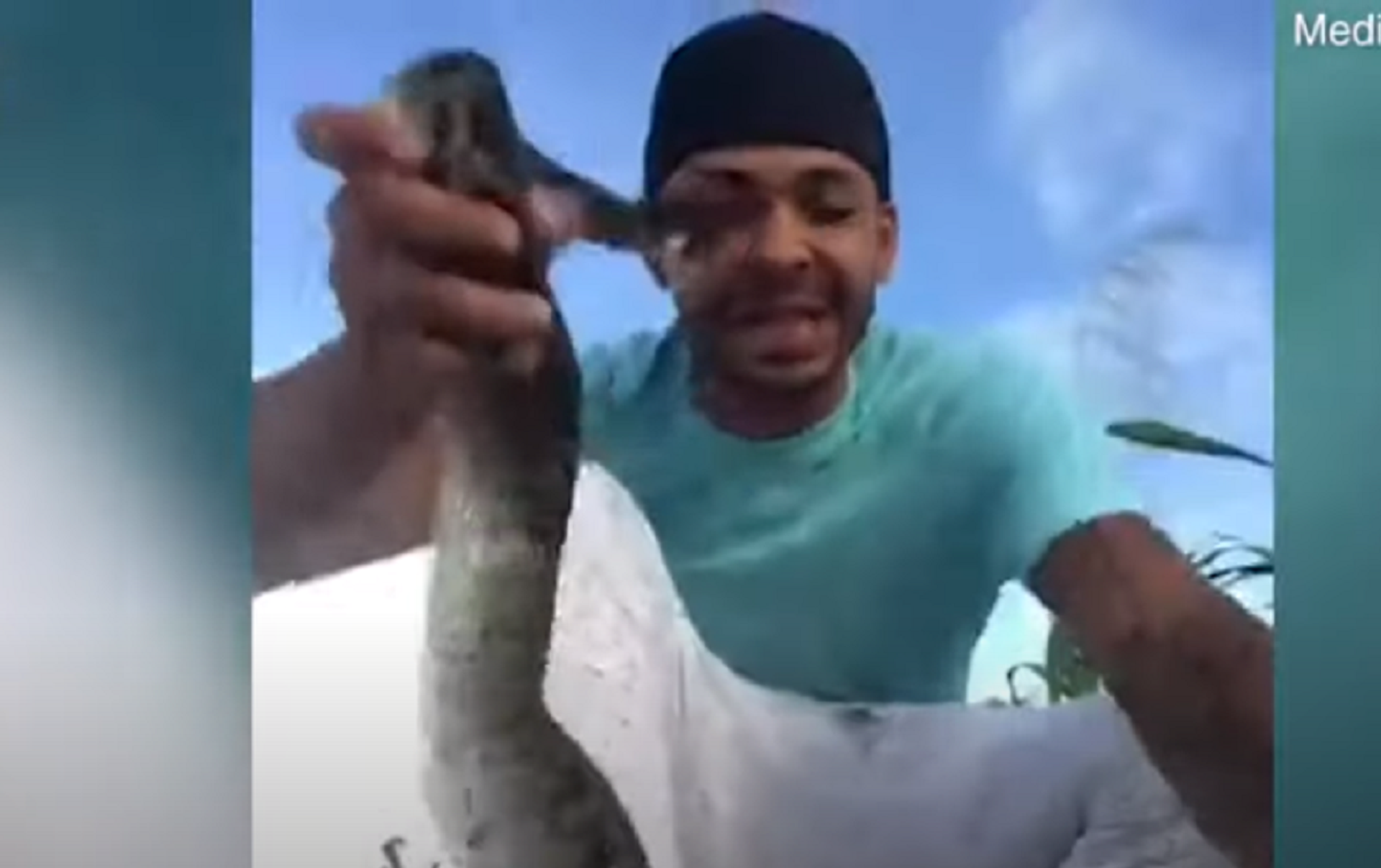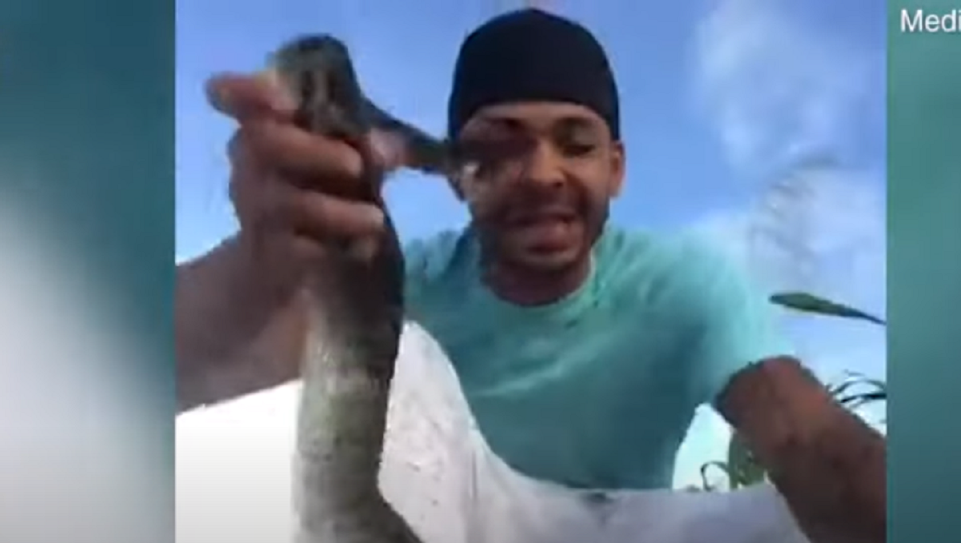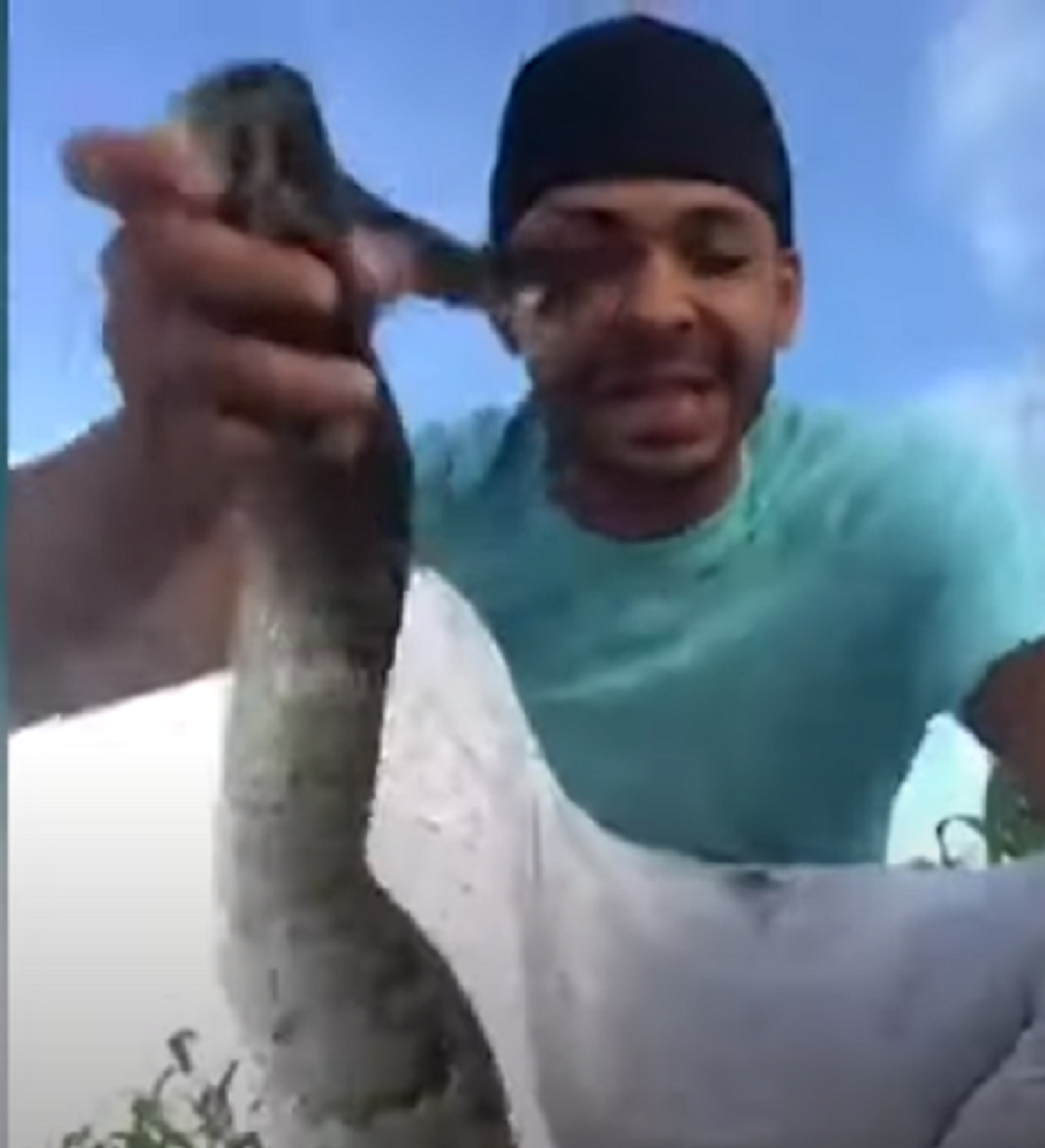 Bất ngờ con trăn cắn vào mặt Bishop. Ông lấy tay bịt vào vết cắn, và khi bỏ tay ra thì có thể thấy con trăn đã cắn vào phần dưới lông mày, gần như chạm vào mắt. Máu chảy ra từ vết thương.