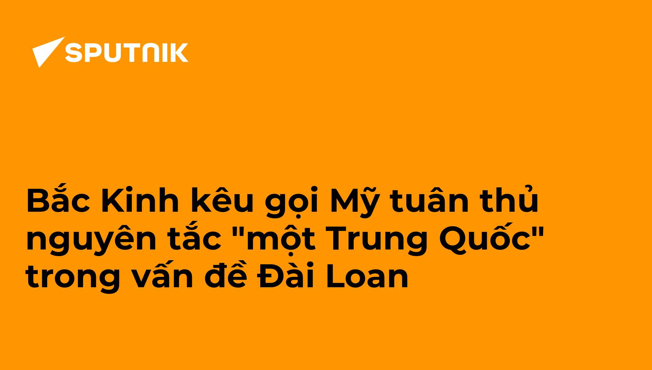 MOSKVA (Sputnik) - Trung Quốc kêu gọi Mỹ tuân thủ các cam kết và nguyên tắc "một Trung Quốc" trong vấn đề Đài Loan, chấm dứt ngay lập tức bất kỳ cuộc tiếp xúc chính thức nào với hòn đảo này, tuyên bố của Đại sứ quán CHND Trung Hoa tại Washington cho biết.