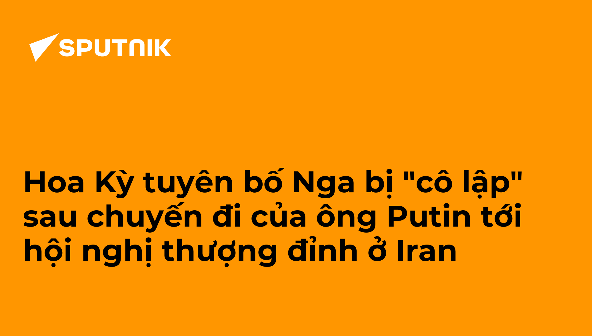 MOSKVA (Sputnik) - Từ chuyến đi của Tổng thống Nga Vladimir Putin tới Tehran để dự hội nghị thượng đỉnh ba bên, Nhà Trắng rút ra kết luận rằng Nga đang bị cô lập.