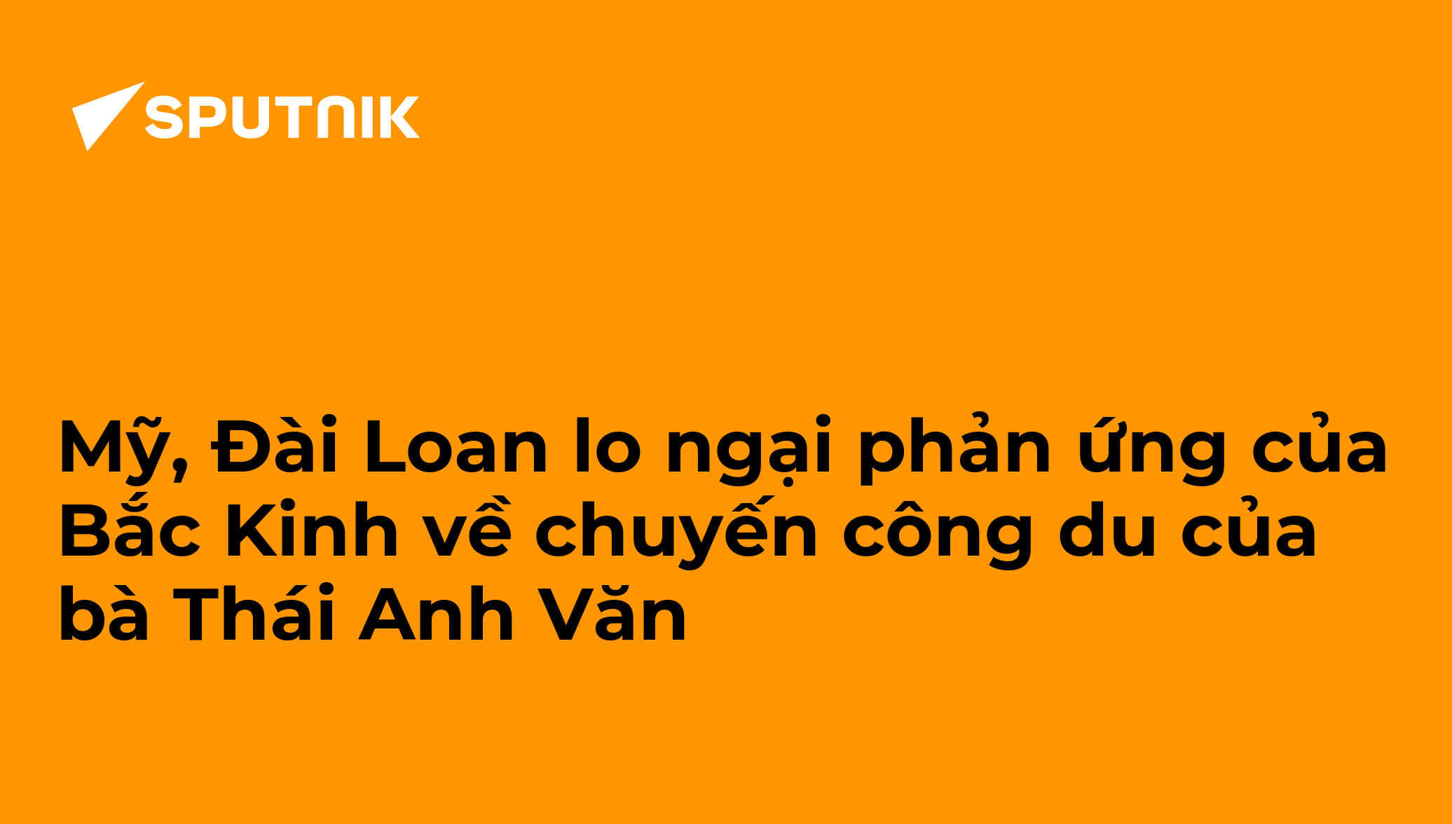 Moskva (Sputnik) - Nhà Trắng và Đài Bắc liên tục liên lạc về việc Tổng thống Đài Loan Thái Anh Văn thăm Hoa Kỳ để chọn giọng điệu phù hợp, vì sợ phản ứng mạnh mẽ từ Bắc Kinh, Financial Times dẫn các nguồn và các nhà phân tích cho biết.