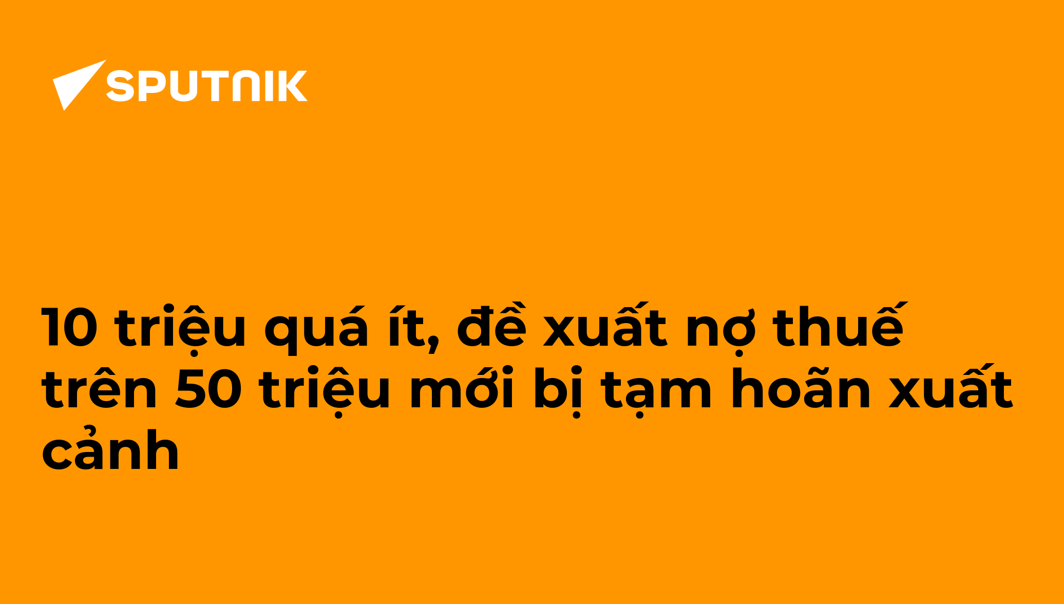 Bộ Tài chính đang đề xuất cá nhân, chủ hộ kinh doanh nợ thuế từ 50 triệu đồng trong 120 ngày sẽ bị tạm hoãn xuất cảnh, thay vì mức 10 triệu được đánh giá là... 20.12.2024, Sputnik Việt Nam