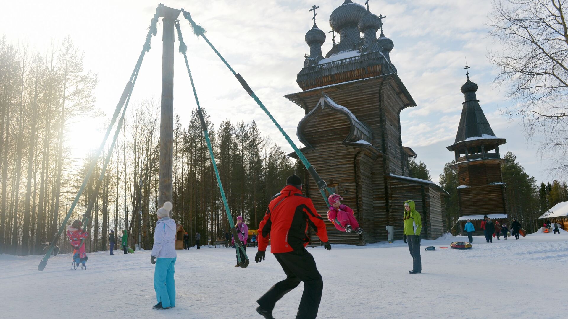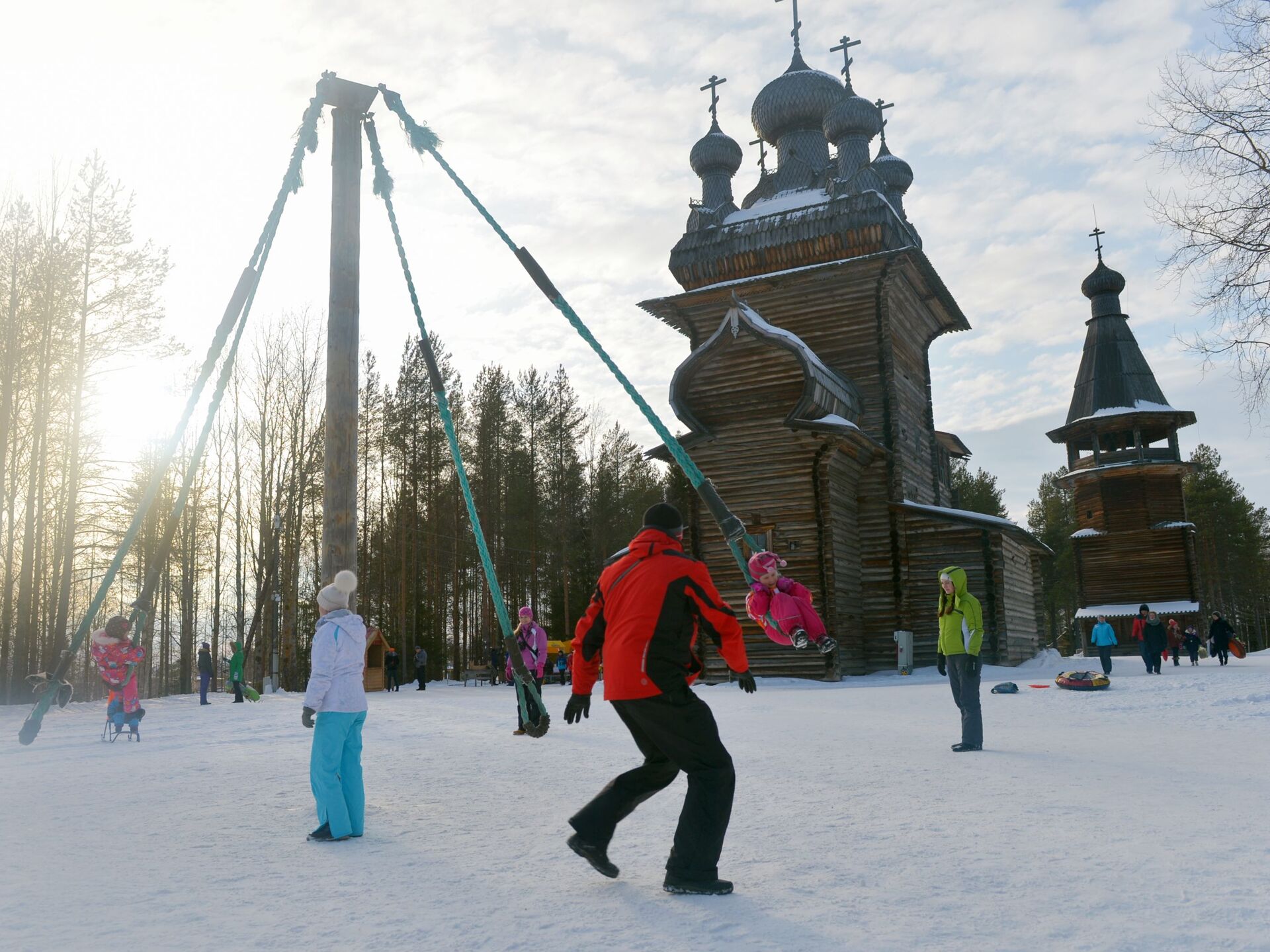 Trẻ em chơi đu quay tại buổi khai mạc tuần lễ Maslenitsa. - Sputnik Việt Nam, 1920, 27.03.2025