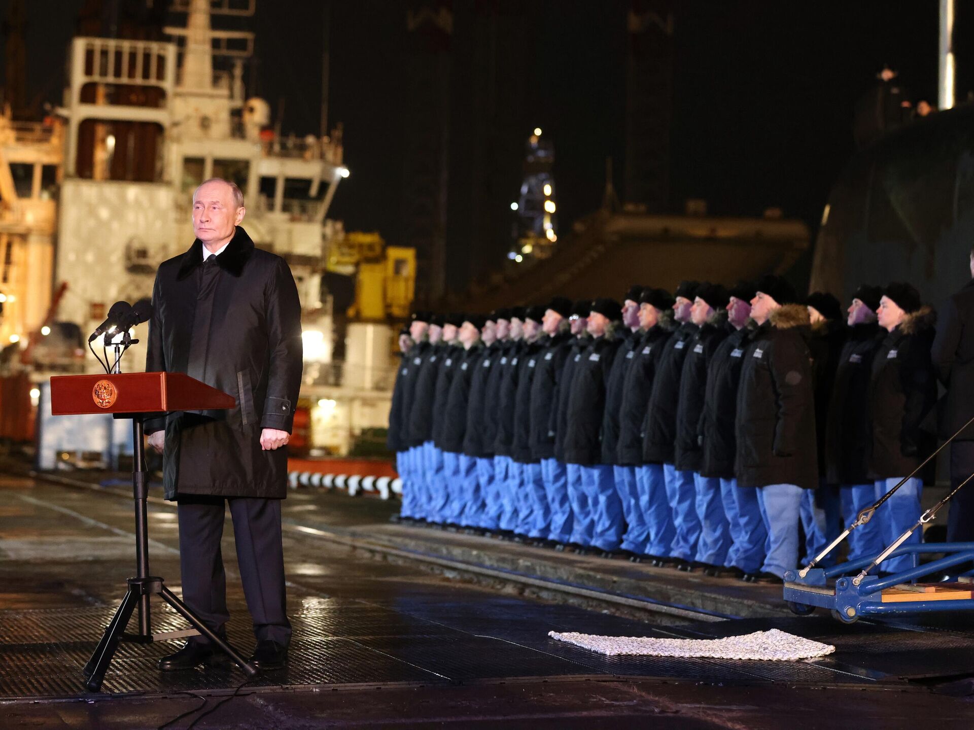 "Mọi thứ đều ở mức hiện đại nhất. Hôm nay, thêm một con tàu như thế đã được hạ thủy. Về cơ bản, nó giống hệt (tàu này), chỉ khác là còn trang bị thêm "Zircon", điều này đặc biệt đáng mừng. Bởi vì "Zircon" cũng có thể được coi là vũ khí có ý nghĩa chiến lược", - ông Putin phát biểu tại cuộc gặp gỡ các thủy thủ tàu ngầm.