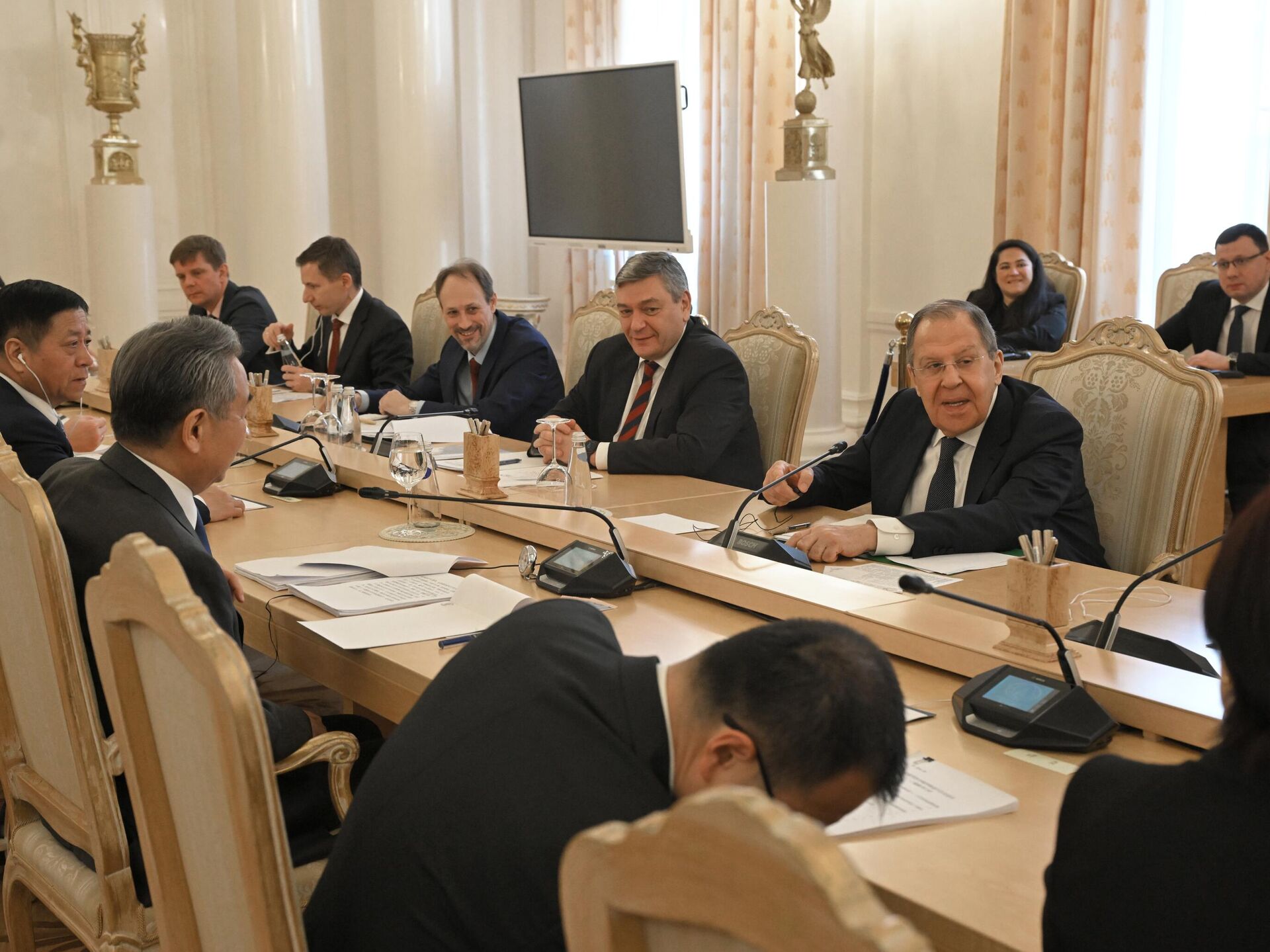 "Nga và Trung Quốc không chỉ đoàn kết với nhau bằng tình anh em lịch sử và quân sự, một đường biên giới chung dài, mà còn bằng truyền thống hàng thế kỷ về quan hệ láng giềng tốt đẹp, cùng chung nhiều về lợi ích quốc gia... Đây là cách các nhà lãnh đạo của chúng ta - Tổng thống Putin và Chủ tịch Tập Cận Bình - định hướng cho chúng ta. Gần đây, trong một cuộc họp chung qua video, và trước đó đã có một cuộc hội kiến qua điện thoại, họ một lần nữa khẳng định ý định chung của họ là liên tục củng cố mối quan hệ Nga-Trung. Chúng ta sẽ nỗ lực hết sức để thực hiện hiệu quả các thỏa thuận của họ", - ông Lavrov nói trong các cuộc hội đàm với Vương Nghị.