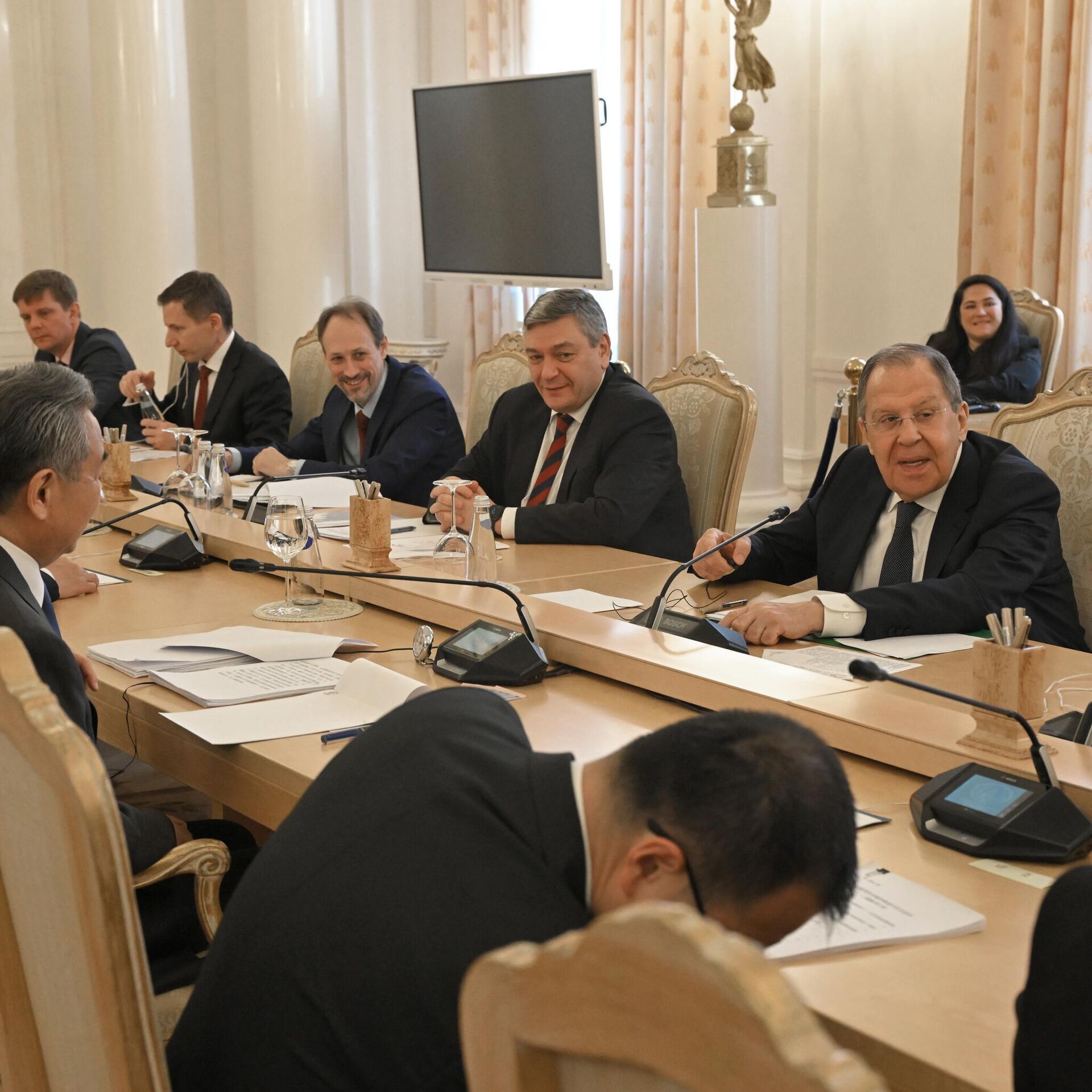"Tôi tin tưởng rằng hôm nay chúng ta sẽ thống nhất về cách xây dựng quan hệ song phương trong bối cảnh chuẩn bị cho các hội nghị thượng đỉnh, cũng như về sự phối hợp sâu hơn tại LHQ, Hội đồng Bảo an, trong SCO, BRICS, Nhóm 20, trong việc hợp tác với ASEAN và tại các diễn đàn đa phương khác vì lợi ích tạo ra một trật tự thế giới đa cực công bằng và dân chủ hơn", - người đứng đầu bộ phận ngoại giao Nga lưu ý.