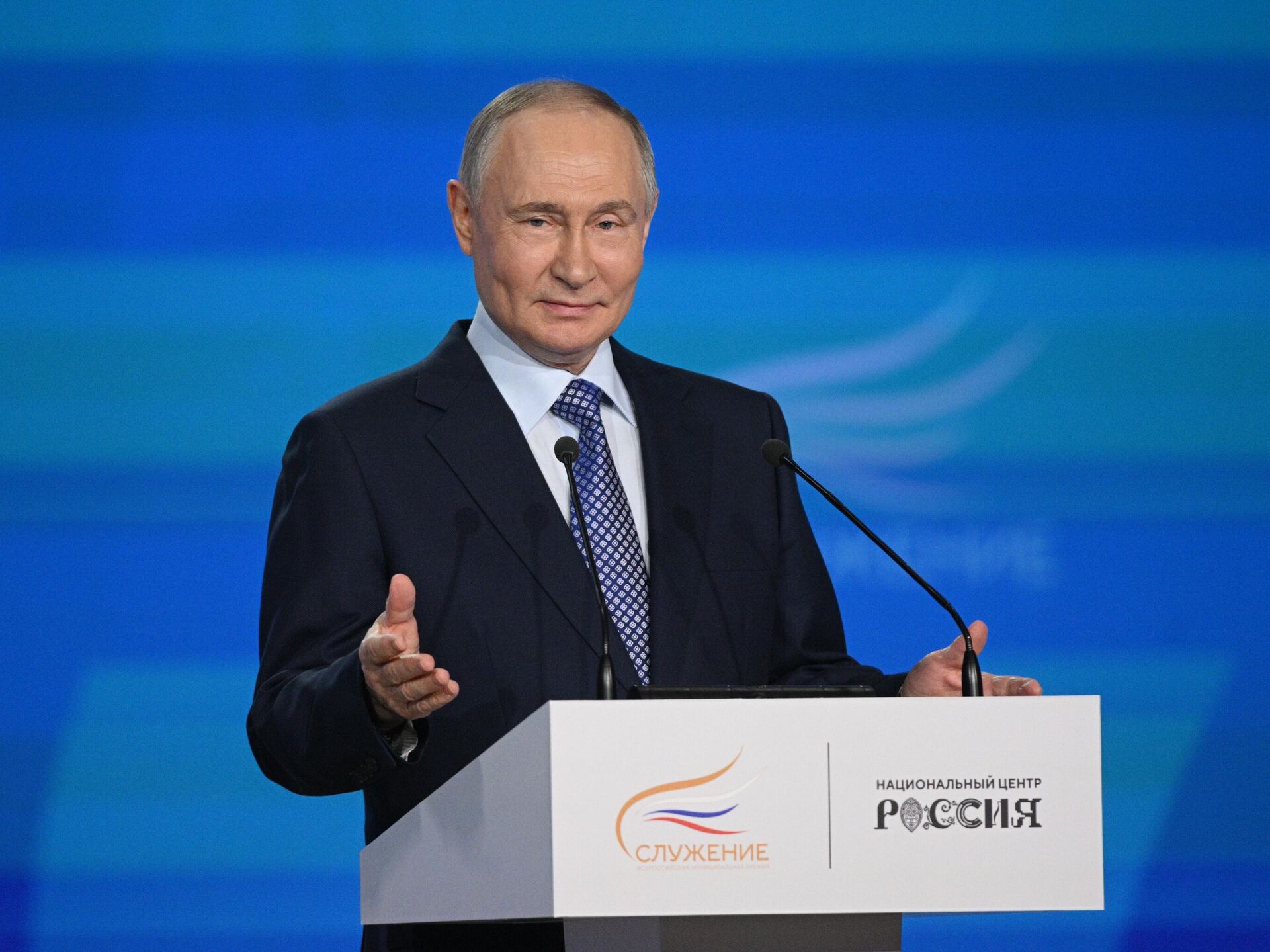 "Mọi người đều biết rõ về vụ tấn công của lực lượng vũ trang Nga vào trung tâm hội nghị gần Đại học Sumy. Đây có phải là một cơ sở dân sự không? Đúng, là cơ sở dân sự. Nhưng tại đó đang diễn ra buổi trao thưởng cho những người thực hiện các tội ác ở tỉnh Kursk: cả các đơn vị của Lực lượng Vũ trang Ukraina và những người theo chủ nghĩa dân tộc. Đây là những người mà chúng tôi coi là tội phạm", nhà lãnh đạo quốc gia nói với các phóng viên sau lễ trao giải "Sự phụng sự" trong khuôn khổ Diễn đàn đô thị Toàn Nga lần thứ II "Quê hương nhỏ - sức mạnh nước Nga".