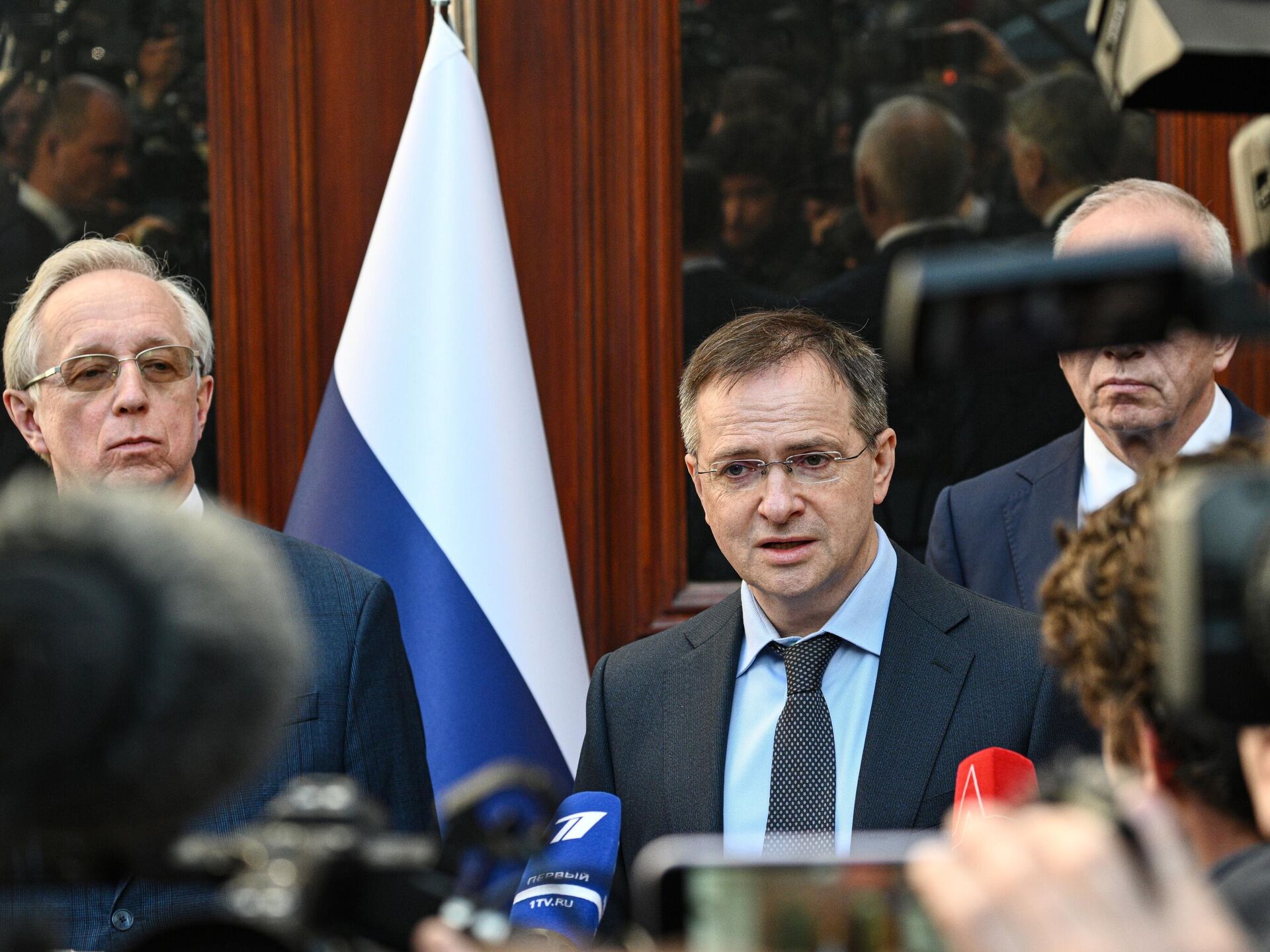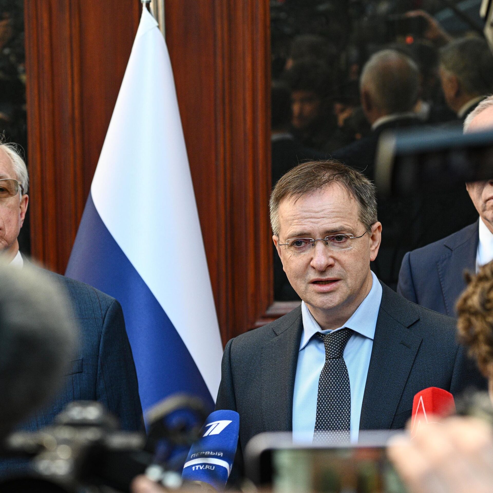 Trước đó, đoàn đại biểu Nga do trợ lý Tổng thống Vladimir Medinsky dẫn đầu đã có cuộc gặp với Bộ trưởng Ngoại giao Thổ Nhĩ Kỳ Hakan Fidan tại văn phòng làm việc của Văn phòng Tổng thống. Cuộc gặp kéo dài hơn một giờ".