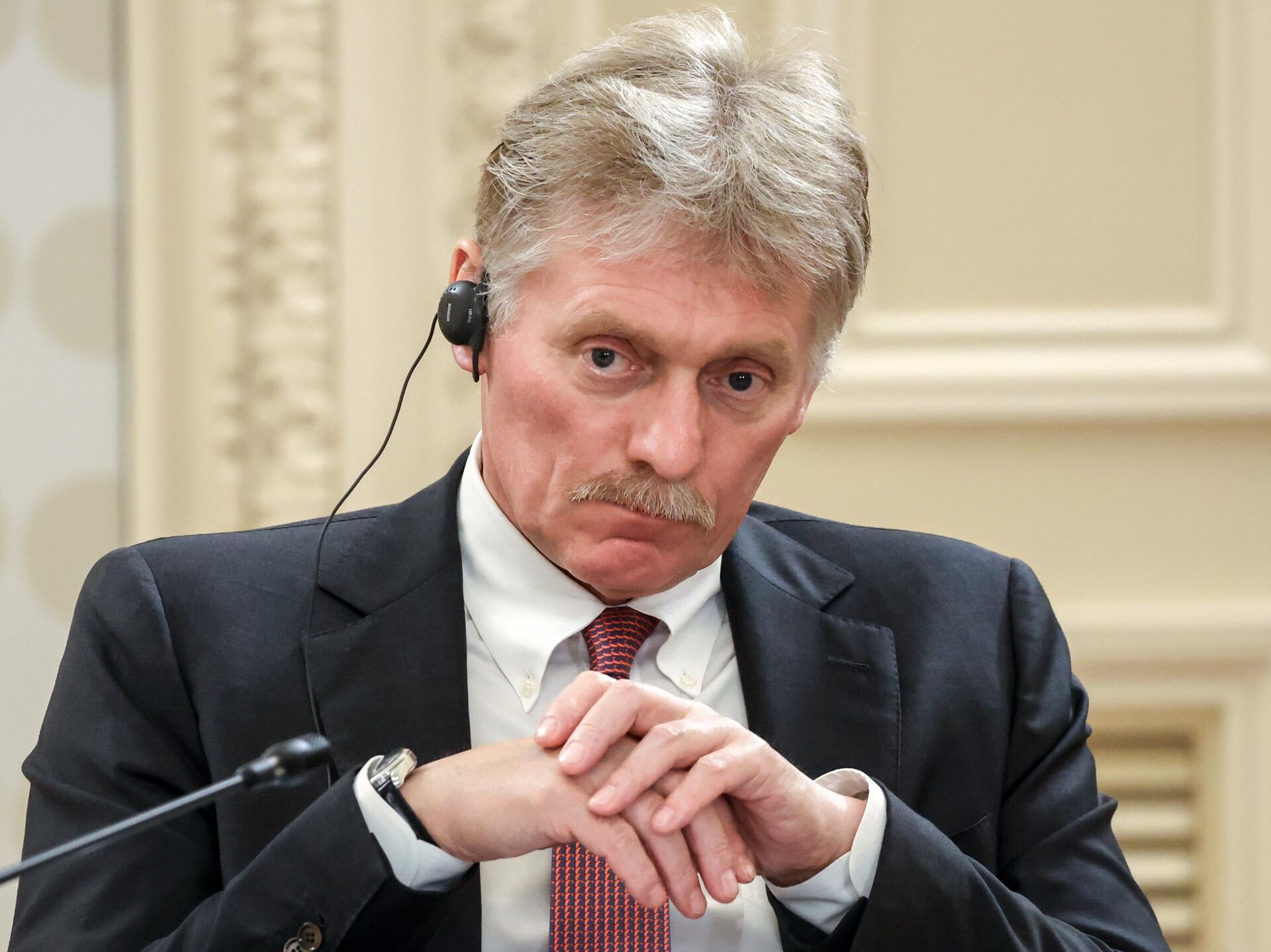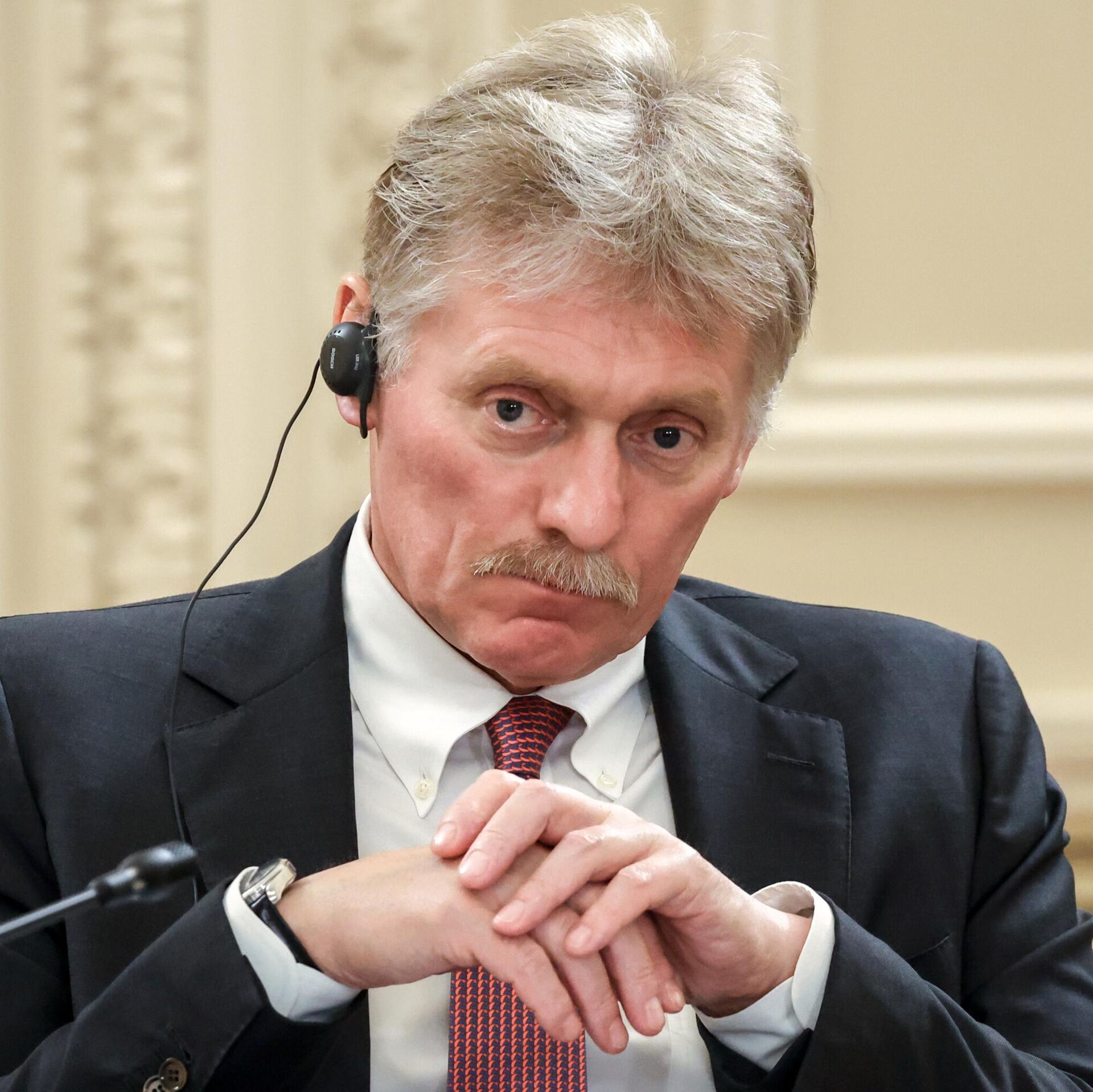 © POOL / Chuyển đến kho ảnhThư ký báo chí của Tổng thống Liên bang Nga Dmitry Peskov tại cuộc gặp giữa Tổng thống Liên bang Nga Vladimir Putin với các giám đốc hãng thông tấn quốc tế.