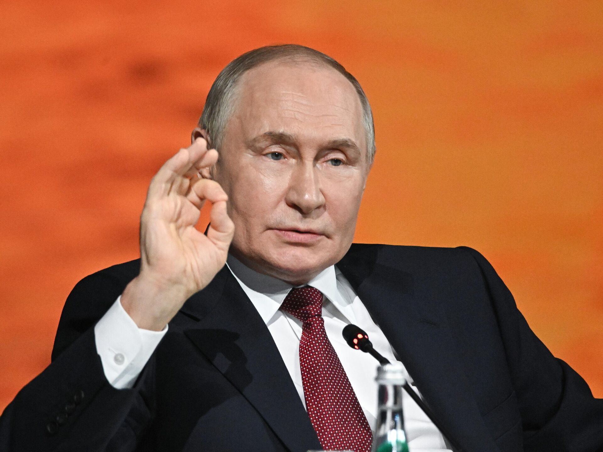"Tôi rất muốn những điều mà ông nói vẫn chỉ ở mức độ lời nói suông", ông Putin phát biểu trong phiên họp toàn thể của Diễn đàn Kinh tế Quốc tế St. Petersburg khi trả lời câu hỏi về cách ông nhìn nhận những tuyên bố mà trong đó lãnh đạo của một quốc gia cho phép giết hại lãnh đạo của một quốc gia khác, ám chỉ đến xung đột giữa Iran và Israel.