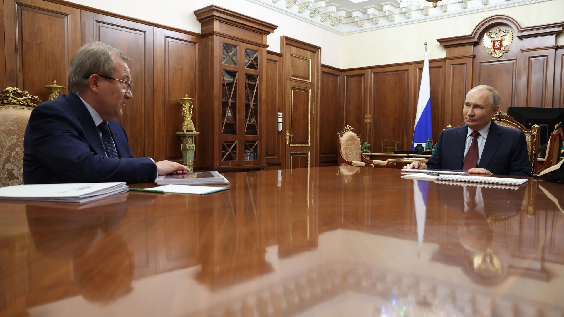 © Sputnik / POOL / Chuyển đến kho ảnhTổng thống Vladimir Putin đã gặp Giám đốc Viện Hàn lâm Khoa học Nga Gennady Krasnikov