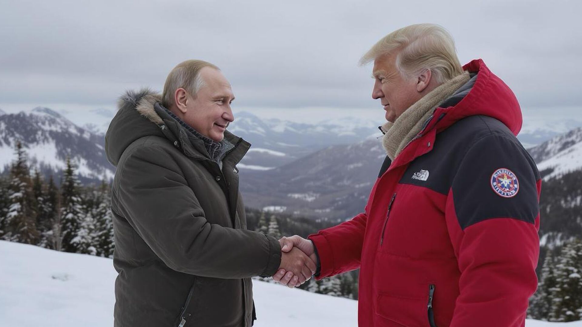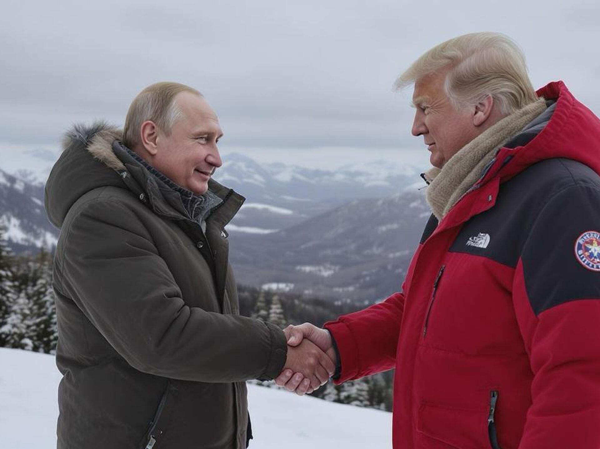 © Sputnik / AITổng thống Nga và Tổng thống Hoa Kỳ gặp nhau tại Alaska. Ảnh được tạo ra bởi AI