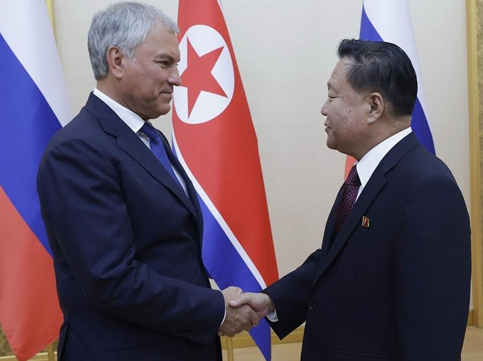 Chủ tịch Hạ viện Nga Vyacheslav Volodin đã có cuộc gặp với nhà lãnh đạo Triều Tiên Kim Jong-un, thông báo từ văn phòng báo chí Hạ viện Nga cho biết. 15.08.2025, Sputnik Việt Nam