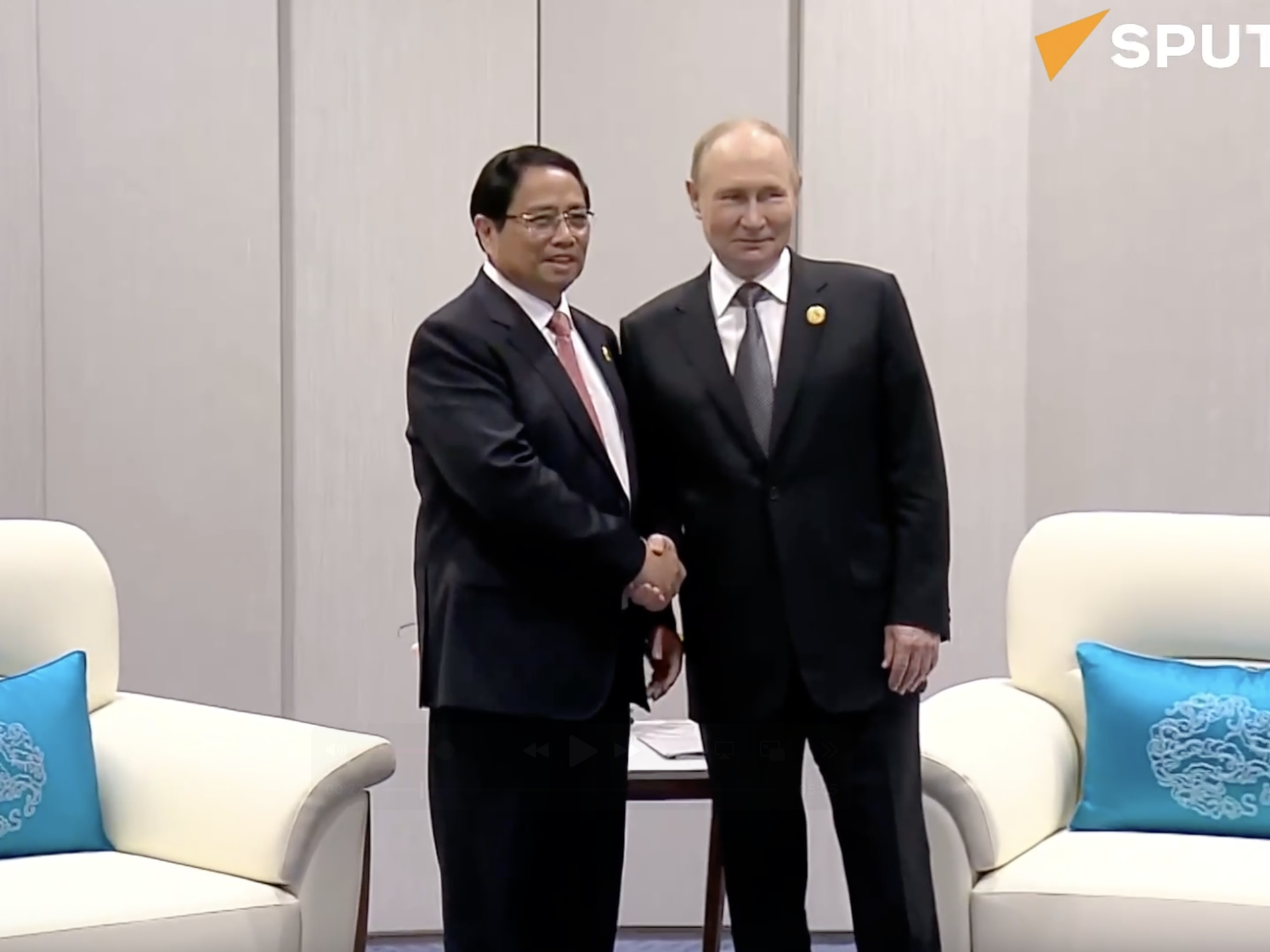 "Các lãnh đạo Chính phủ luôn có chương trình nghị sự hợp tác rất lớn trong những lĩnh vực thực tiễn giữa Việt Nam và Nga", ông Putin tuyên bố trong cuộc gặp Thủ tướng Việt Nam Phạm Minh Chính bên lề Hội nghị Thượng đỉnh Tổ chức Hợp tác Thượng Hải (SCO).