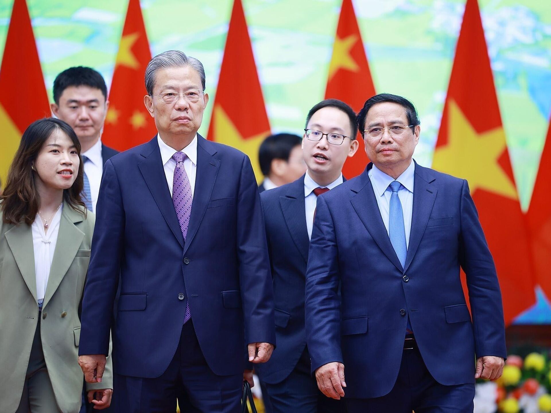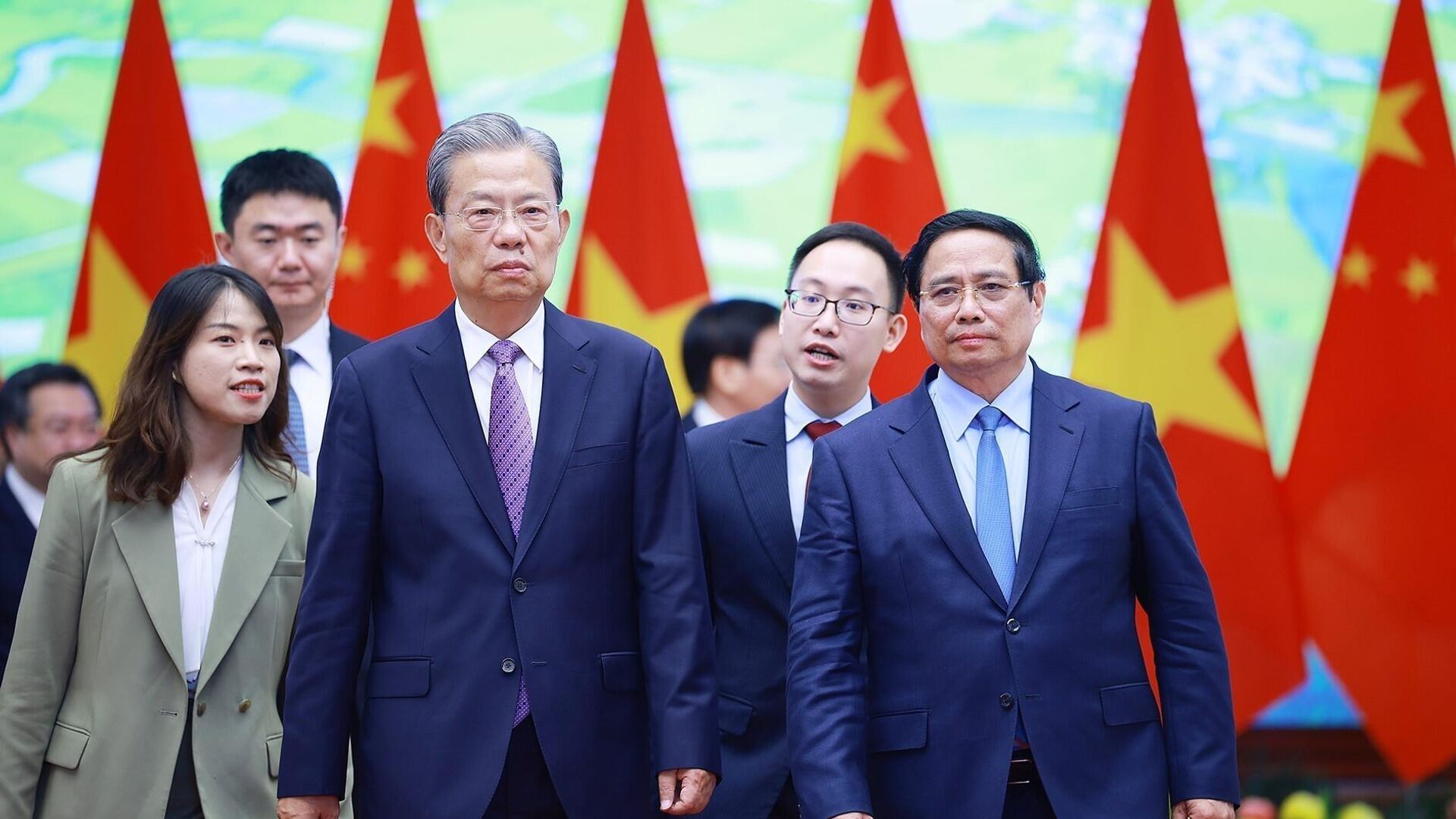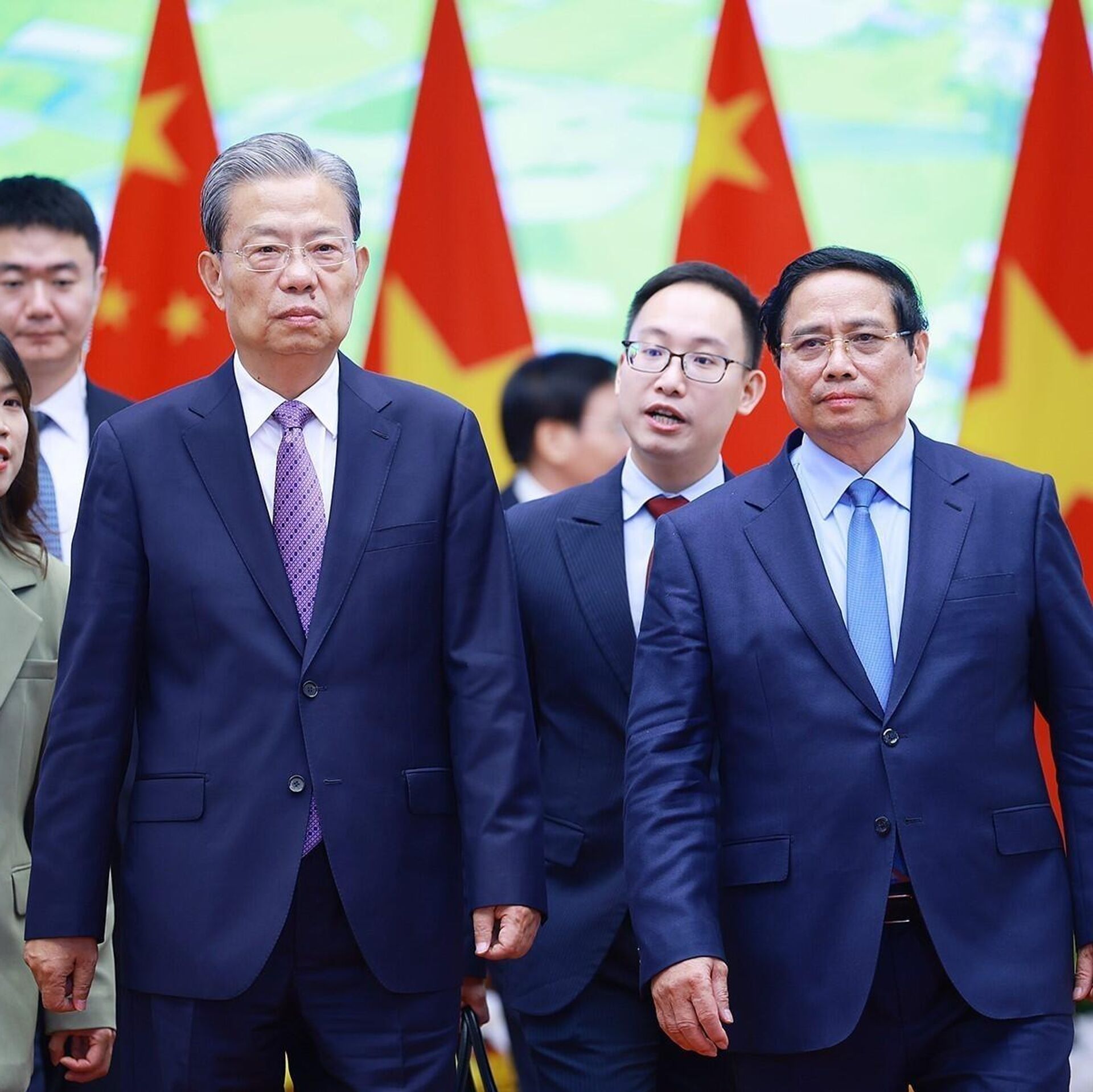 Ủy viên trưởng Triệu Lạc Tế bày tỏ coi trọng và nhất trí với các đề xuất của Thủ tướng Phạm Minh Chính; khẳng định Trung Quốc sẵn sàng đi sâu hợp tác thực chất, mở cửa thị trường cho hàng hóa Việt Nam chất lượng cao.