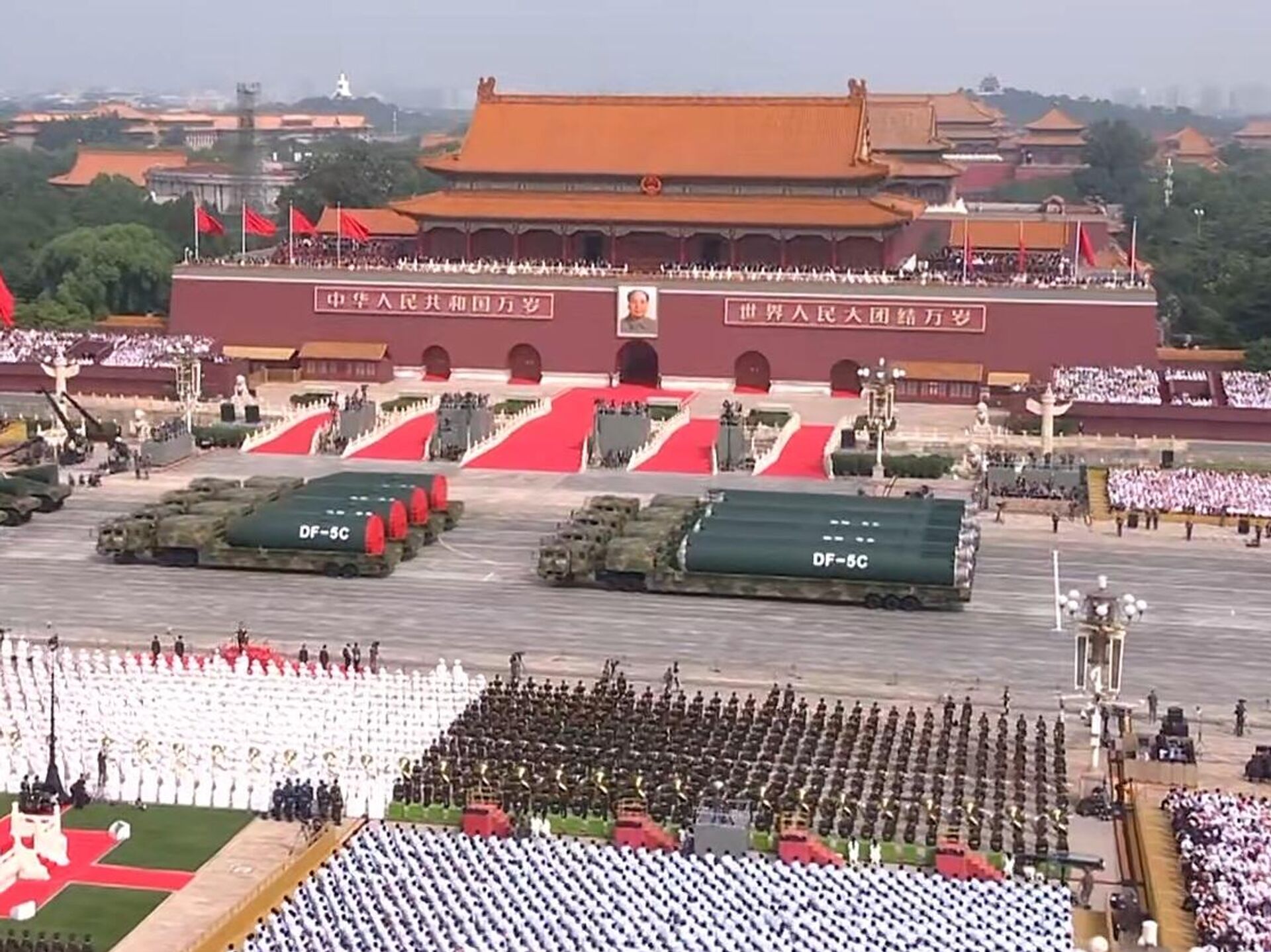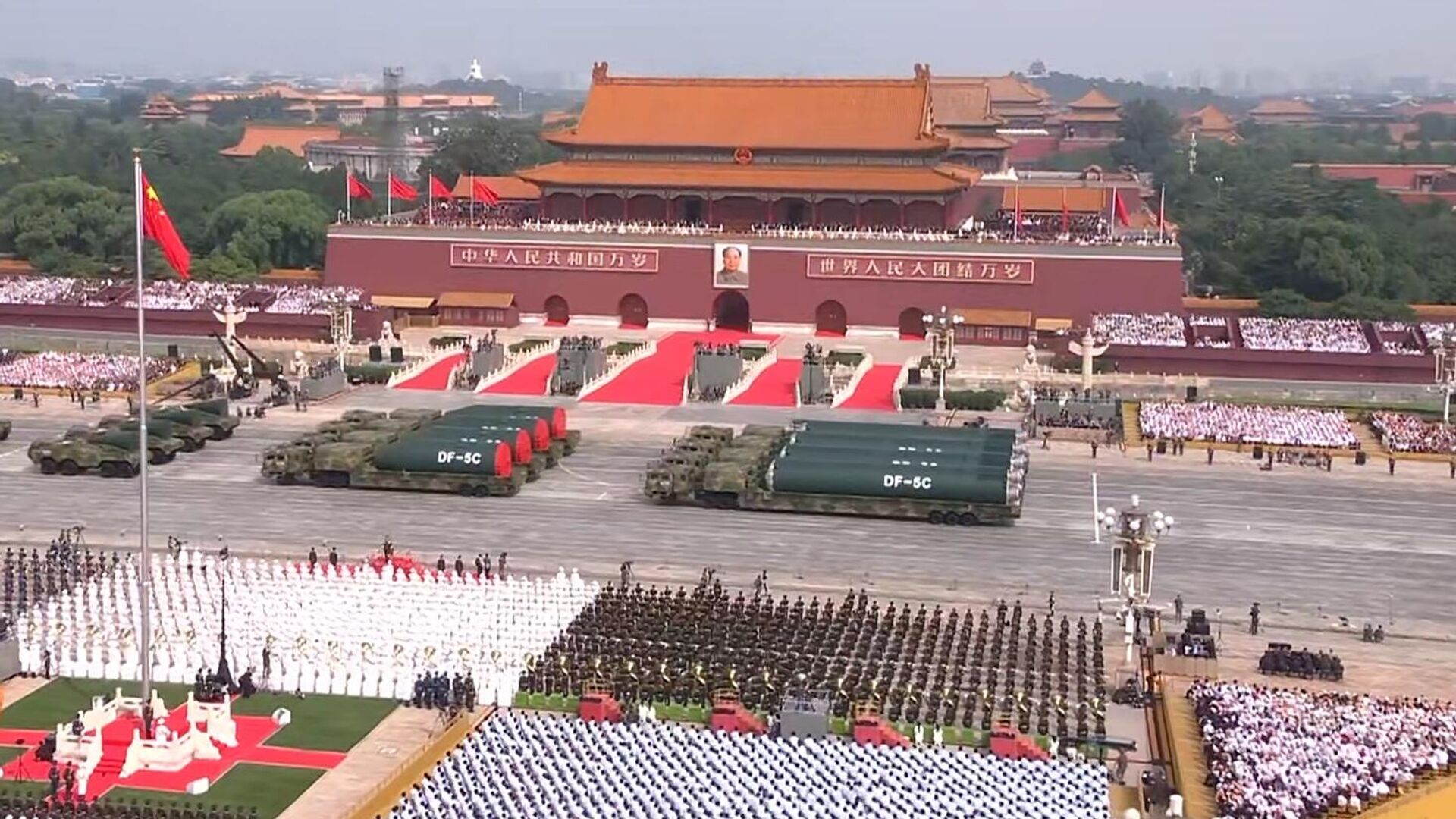 “Trước mắt chúng ta là đoàn xe tên lửa mang đầu đạn hạt nhân lần đầu tiên xuất hiện cùng nhau, gồm tên lửa phóng từ trên không Jinlei-1, tên lửa đạn đạo liên lục địa phóng từ tàu ngầm Julang-3, tên lửa đạn đạo liên lục địa phóng từ mặt đất Dongfeng-61 và Dongfeng-31,” - Bình luận viên buổi truyền hình trực tiếp Lễ duyệt binh cho biết.