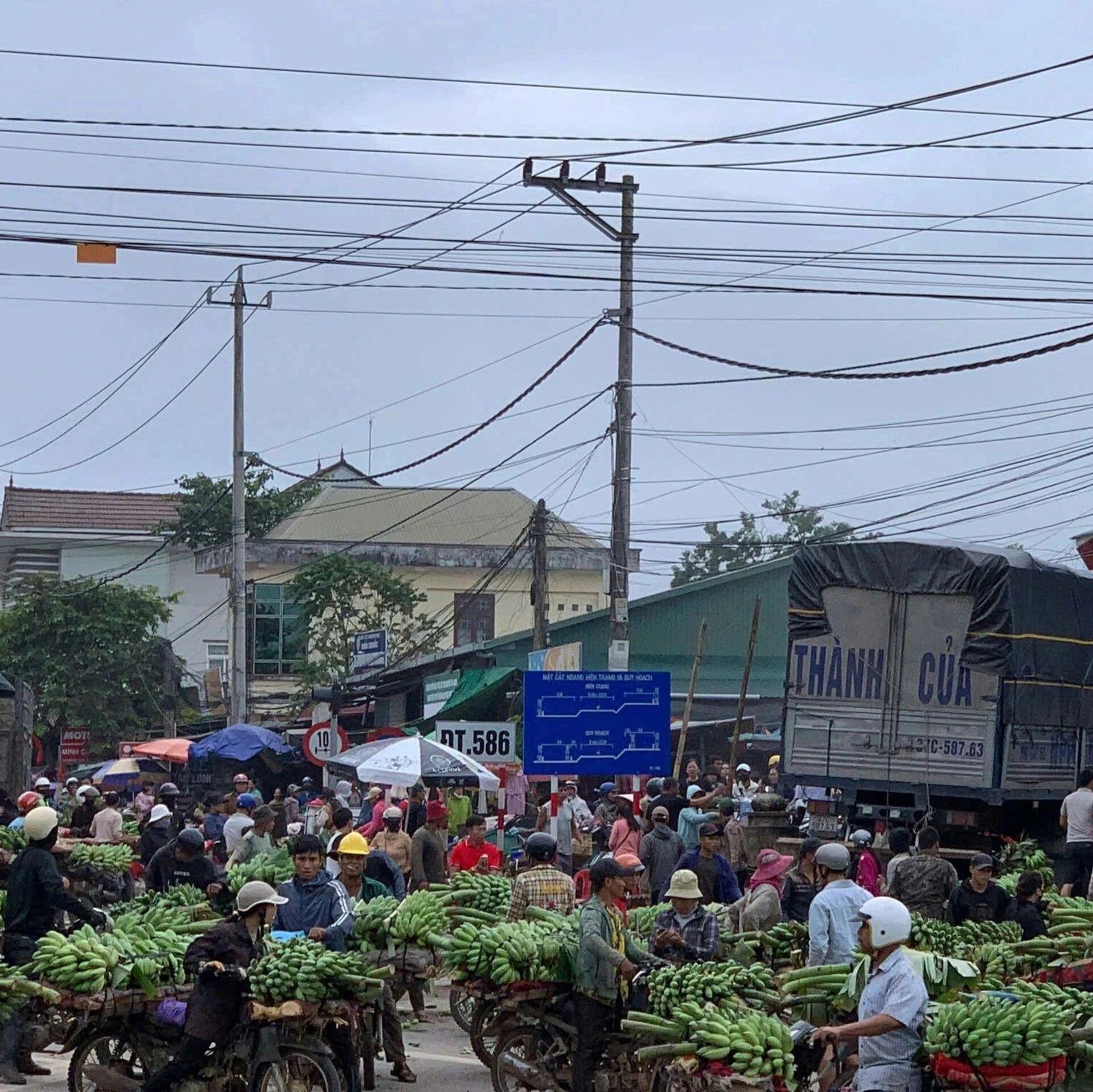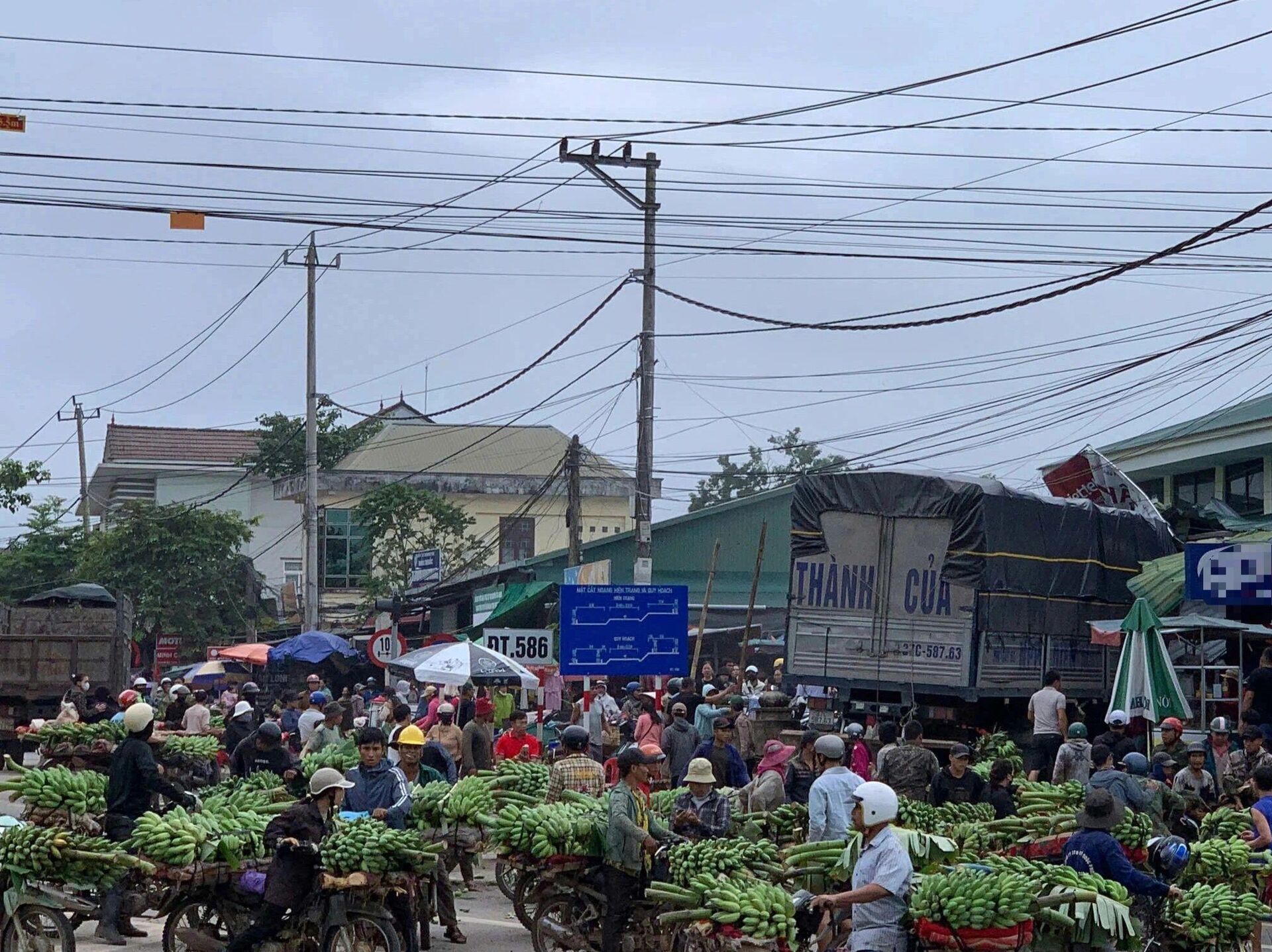 Thời điểm chiếc xe tải gặp nạn, khu chợ này có rất đông tiểu thương và người dân mua bán. Không khí hỗn loạn, hoảng loạn bao trùm toàn bộ khu vực sau va chạm. Một số xe máy chở chuối của người dân bị cuốn vào gầm xe, hư hỏng nặng, trong khi phần đầu xe tải cắm thẳng vào một số sạp hàng.