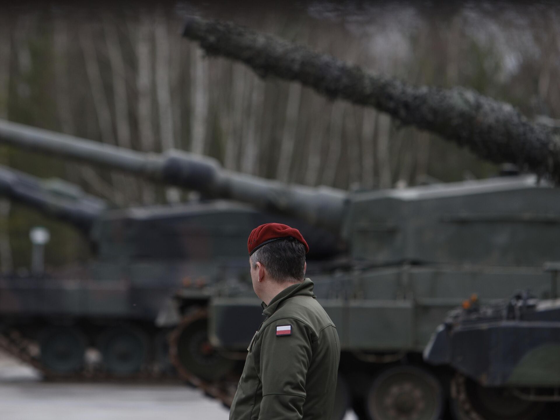 © AP Photo / Michal DyjukMột người lính Ba Lan bên cạnh xe tăng Leopard 2 trong quá trình huấn luyện tại một căn cứ quân sự