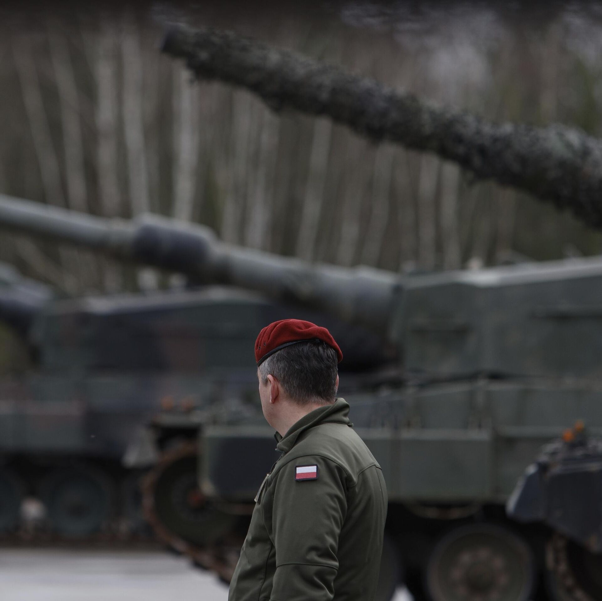 Một người lính Ba Lan bên cạnh xe tăng Leopard 2 trong quá trình huấn luyện tại một căn cứ quân sự - Sputnik Việt Nam, 1920, 09.10.2025