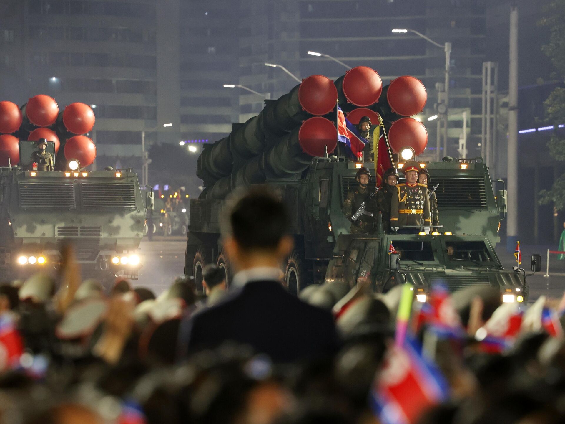 Cuộc diễu binh lên đến đỉnh điểm với màn trình diễn vũ khí chiến lược, bao gồm tên lửa mang đầu đạn siêu thanh và tên lửa đạn đạo liên lục địa Hwasongpho-20.