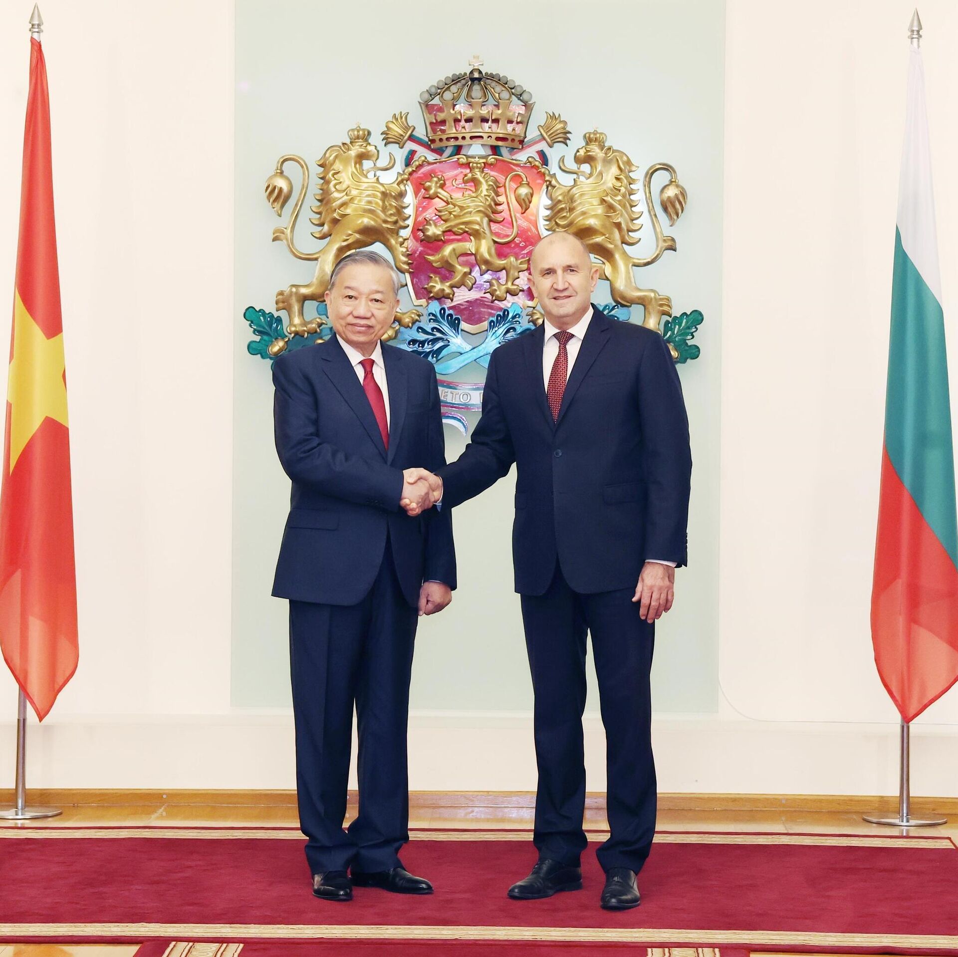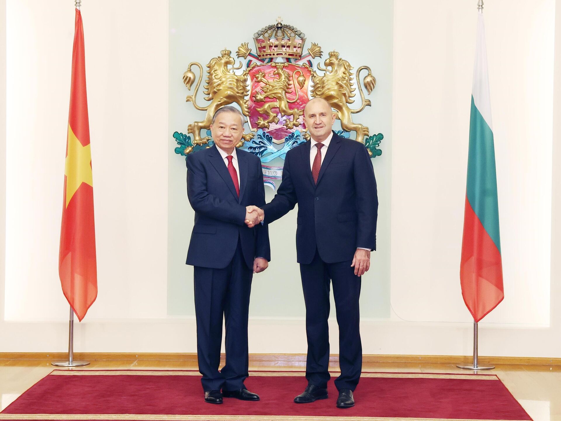 Tổng thống Bulgaria Rumen Radev nhấn mạnh, trên tinh thần tin cậy và hiểu biết lẫn nhau, hai bên đã có cuộc hội đàm thành công; cùng nhau đánh giá lại tình hình hợp tác song phương, thống nhất các định hướng lớn nhằm mở rộng, làm sâu sắc hơn các lĩnh vực hợp tác truyền thống, đồng thời xác định những lĩnh vực hợp tác mới mà hai nước có tiềm năng và nhu cầu. Hai bên cũng trao đổi sâu rộng về các vấn đề khu vực và quốc tế cùng quan tâm, thống nhất thiết lập quan hệ Đối tác Chiến lược Việt Nam - Bulgaria.Năm 2025, hai nước sẽ kỷ niệm 75 năm thiết lập quan hệ ngoại giao, dấu mốc quan trọng góp phần đưa quan hệ hữu nghị truyền thống và hợp tác nhiều mặt Việt Nam - Bulgaria ngày càng đi vào chiều sâu, thực chất và hiệu quả. Bulgaria đã có nhiều đóng góp tích cực cho công cuộc xây dựng và phát triển của Việt Nam, giúp Việt Nam đào tạo nguồn nhân lực, hình thành đội ngũ công nhân kỹ thuật cao - những người sau này trở thành cầu nối trong hợp tác giữa hai quốc gia.Tổng thống Rumen Radev bày tỏ sự quan tâm, ngưỡng mộ và chúc mừng những thành tựu to lớn mà Việt Nam đã đạt được trong công cuộc Đổi mới, phát triển đất nước và hội nhập quốc tế; đồng thời khẳng định với những thành tựu về kinh tế và vị thế chính trị ngày càng cao, Việt Nam là nhân tố quan trọng tại khu vực Đông Nam Á.Trong thời gian tới, Tổng thống Rumen Radev mong muốn hai nước tăng cường hợp tác hiệu quả trong các lĩnh vực truyền thống như quốc phòng - an ninh, giáo dục - đào tạo, khoa học - công nghệ, nông nghiệp, văn hóa - thể thao, du lịch và giao lưu nhân dân. Ông nhấn mạnh, chuyến thăm này mở ra cơ hội và tầm nhìn mới trong quan hệ song phương, góp phần làm sâu sắc hơn hợp tác giữa hai nước.Tại buổi gặp gỡ báo chí, Tổng Bí thư Tô Lâm cho biết, trên cơ sở những bước phát triển tích cực và thành tựu to lớn trong 75 năm thiết lập quan hệ ngoại giao, với niềm tin vững chắc vào tương lai tốt đẹp của quan hệ hai nước, Việt Nam và Bulgaria đã thông qua Tuyên bố chung về việc thiết lập quan hệ Đối tác Chiến lược. Ông nhấn mạnh đây là dấu mốc quan trọng, tạo nền tảng đưa quan hệ hai nước lên tầm cao mới, vì lợi ích của nhân dân hai nước, vì hòa bình, ổn định và phát triển trong khu vực cũng như trên thế giới.Khuôn khổ hợp tác này được kỳ vọng sẽ củng cố và làm sâu sắc hơn quan hệ Việt Nam - Bulgaria, phát huy tối đa thế mạnh của mỗi bên để cùng hướng tới mục tiêu phát triển nhanh, bền vững trong bối cảnh mới.Nhằm hiện thực hóa Tuyên bố chung và đưa quan hệ song phương bước vào giai đoạn phát triển mới, Tổng Bí thư Tô Lâm nêu rõ hai bên đã thống nhất sáu nhóm giải pháp: tăng cường tin cậy chính trị thông qua việc tiếp tục đẩy mạnh trao đổi đoàn, tiếp xúc cấp cao trên tất cả các kênh Đảng, Nhà nước, Quốc hội và giao lưu nhân dân, trong cả khuôn khổ song phương và đa phương; đồng thời tiếp tục thúc đẩy và mở rộng các cơ chế hợp tác hiện có, làm sâu sắc thêm hợp tác chuyên ngành.Hai bên thống nhất đẩy mạnh hợp tác trong lĩnh vực quốc phòng - an ninh, phù hợp với khuôn khổ Đối tác Chiến lược hiện nay; tăng cường hợp tác đào tạo, trao đổi học thuật giữa các học viện, cơ sở nghiên cứu quốc phòng; hợp tác trong lĩnh vực gìn giữ hòa bình Liên Hợp Quốc, an ninh mạng và quân y.Trong bối cảnh kinh tế toàn cầu đối mặt nhiều thách thức, Việt Nam và Bulgaria nhất trí phối hợp chặt chẽ, coi hợp tác kinh tế, thương mại và đầu tư là trụ cột trung tâm trong quan hệ Đối tác Chiến lược; cam kết thúc đẩy tự do thương mại, mở cửa thị trường cho nhau; triển khai hiệu quả Hiệp định Thương mại tự do Việt Nam - EU (EVFTA) với mục tiêu tăng gấp đôi kim ngạch thương mại song phương trong thời gian tới; sẵn sàng đóng vai trò “cửa ngõ” cho hàng hóa của Việt Nam và Bulgaria thâm nhập thị trường ASEAN và EU.Hai bên cũng nhất trí đưa hợp tác khoa học - công nghệ trở thành trụ cột quan trọng trong quan hệ Đối tác Chiến lược, mở rộng hợp tác trong các lĩnh vực có thế mạnh như công nghệ thông tin, chuyển đổi số, kinh tế số, hạ tầng số, chính phủ điện tử, dược phẩm, y sinh học, trí tuệ nhân tạo (AI), khoa học máy tính và năng lượng xanh.Về hợp tác giáo dục - đào tạo, văn hóa, du lịch, y tế, lao động và nông nghiệp, những lĩnh vực còn nhiều tiềm năng phát triển, hai bên thống nhất đẩy mạnh đào tạo nguồn nhân lực chất lượng cao; xây dựng các chương trình, hoạt động văn hóa, du lịch, triển lãm, giao lưu âm nhạc nhằm tăng cường hiểu biết và kết nối giữa nhân dân hai nước; tiếp tục tạo điều kiện thuận lợi cho cộng đồng người Việt Nam tại Bulgaria hội nhập sâu rộng, đóng góp tích cực vào quan hệ hữu nghị truyền thống và hợp tác toàn diện giữa hai nước.Hai bên cũng nhất trí tăng cường trao đ