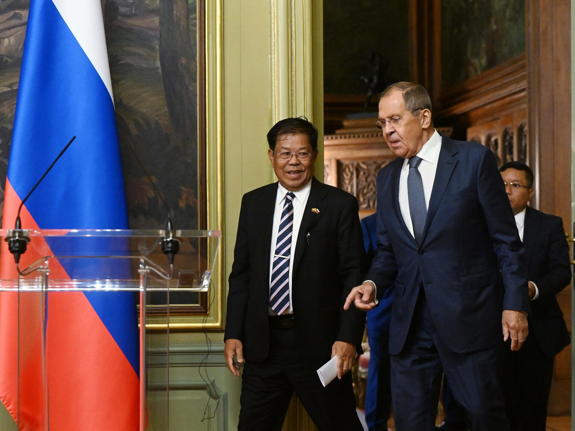 MATXCƠVA (Sputnik) - Bộ Ngoại giao Nga cho biết hôm thứ Ba Ngoại trưởng Nga Sergey Lavrov và Bộ trưởng Ngoại giao Myanmar Than Swe thảo luận về việc tăng cường đối thoại chính trị cũng như mở rộng quan hệ thương mại – kinh tế và hợp tác nhân văn giữa hai nước.
