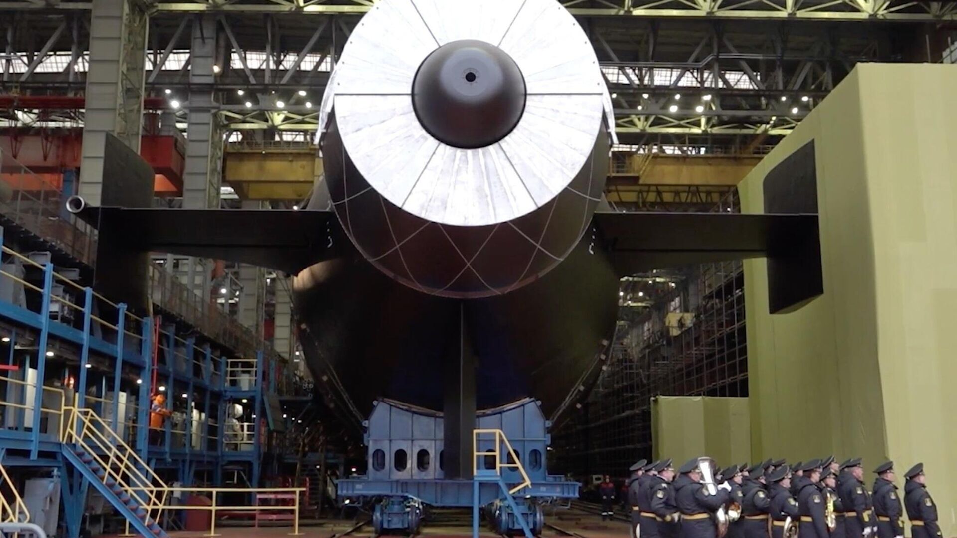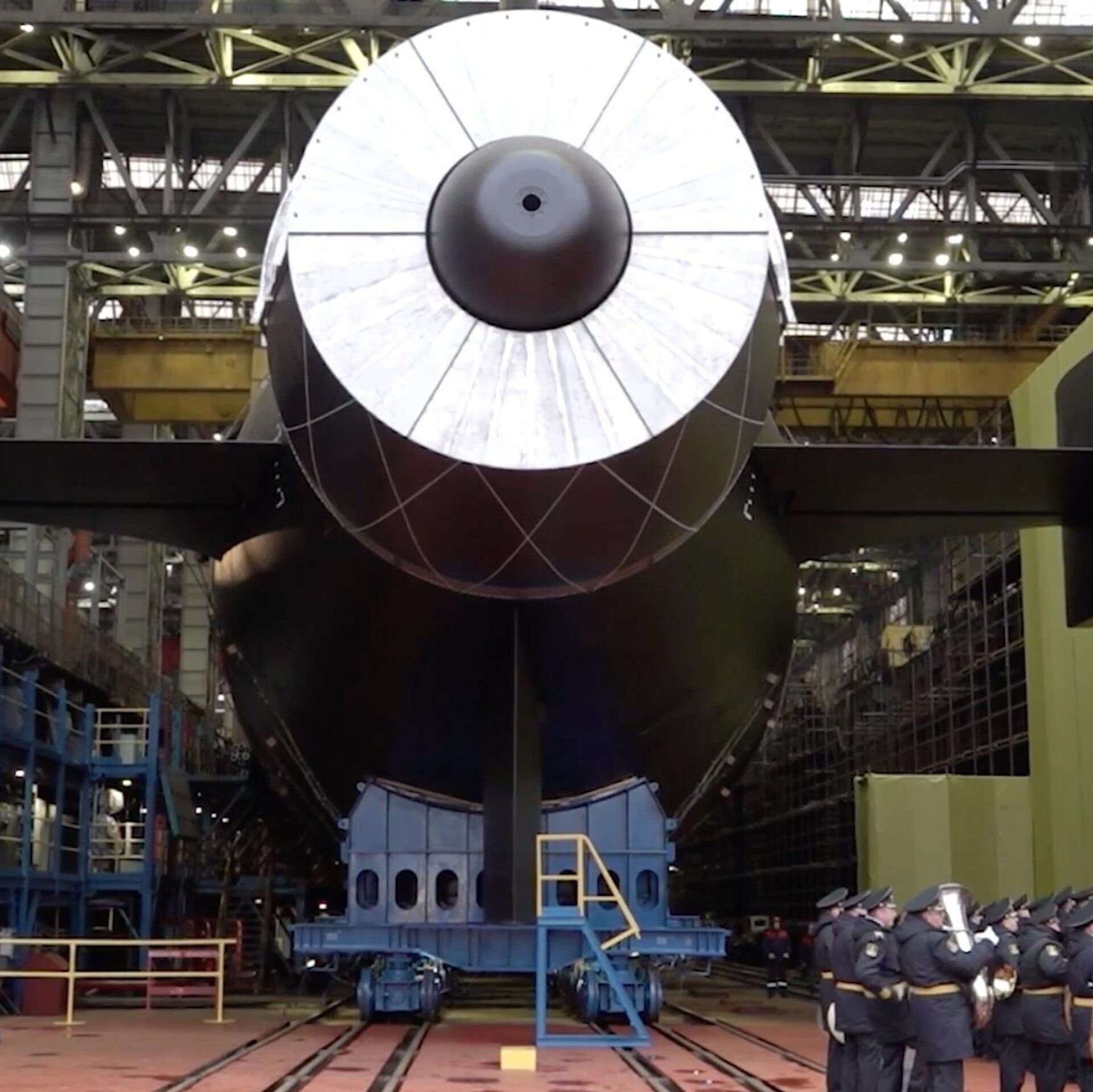 "Tại Severodvinsk, dưới sự chủ trì của Bộ trưởng Quốc phòng Nga Andrei Belousov, diễn ra buổi lễ hạ thủy tàu ngầm hạt nhân "Khabarovsk" từ ụ tàu tại xưởng đóng tàu "Sevmash", thông cáo viết.