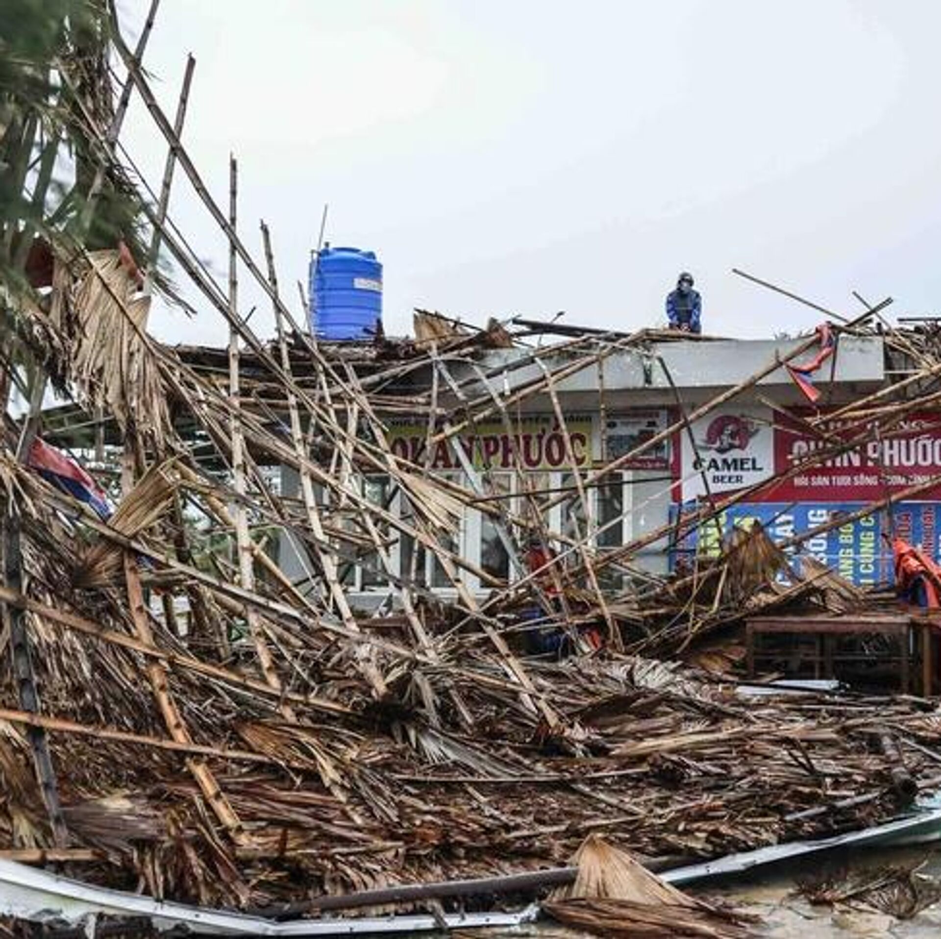 Dọc khu vực ven biển và tuyến quốc lộ qua phường Sông Cầu, xã Xuân Cảnh, Xuân Lộc (đông bắc tỉnh Đắk Lắk), nhiều ngôi nhà bị tốc mái, cây cối và cột điện ngã... 07.11.2025, Sputnik Việt Nam