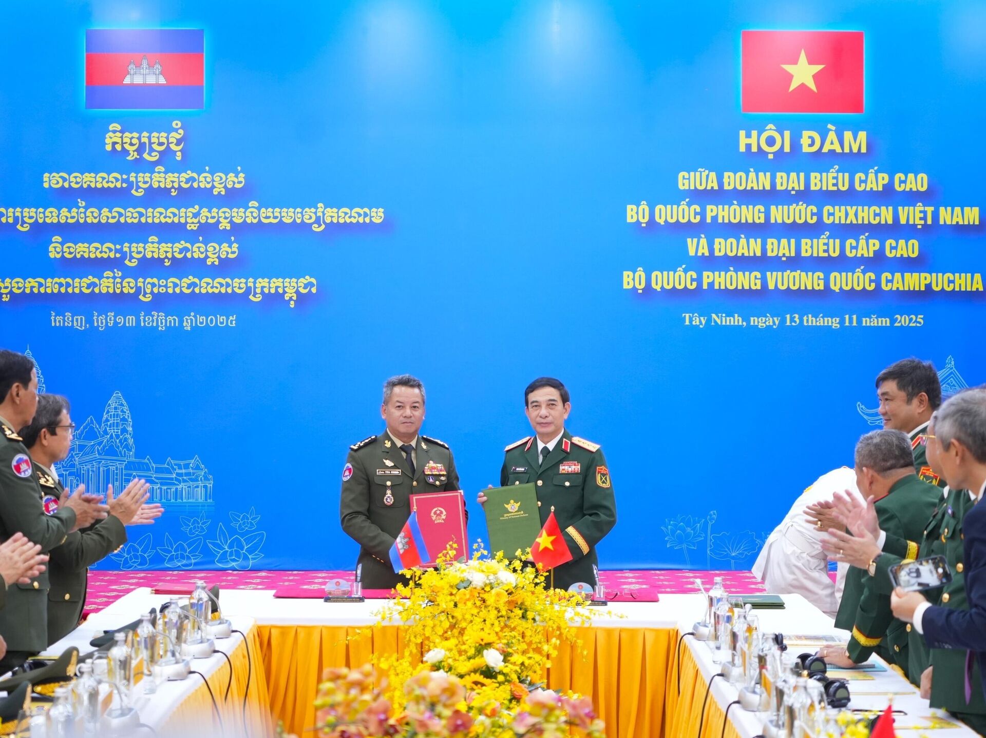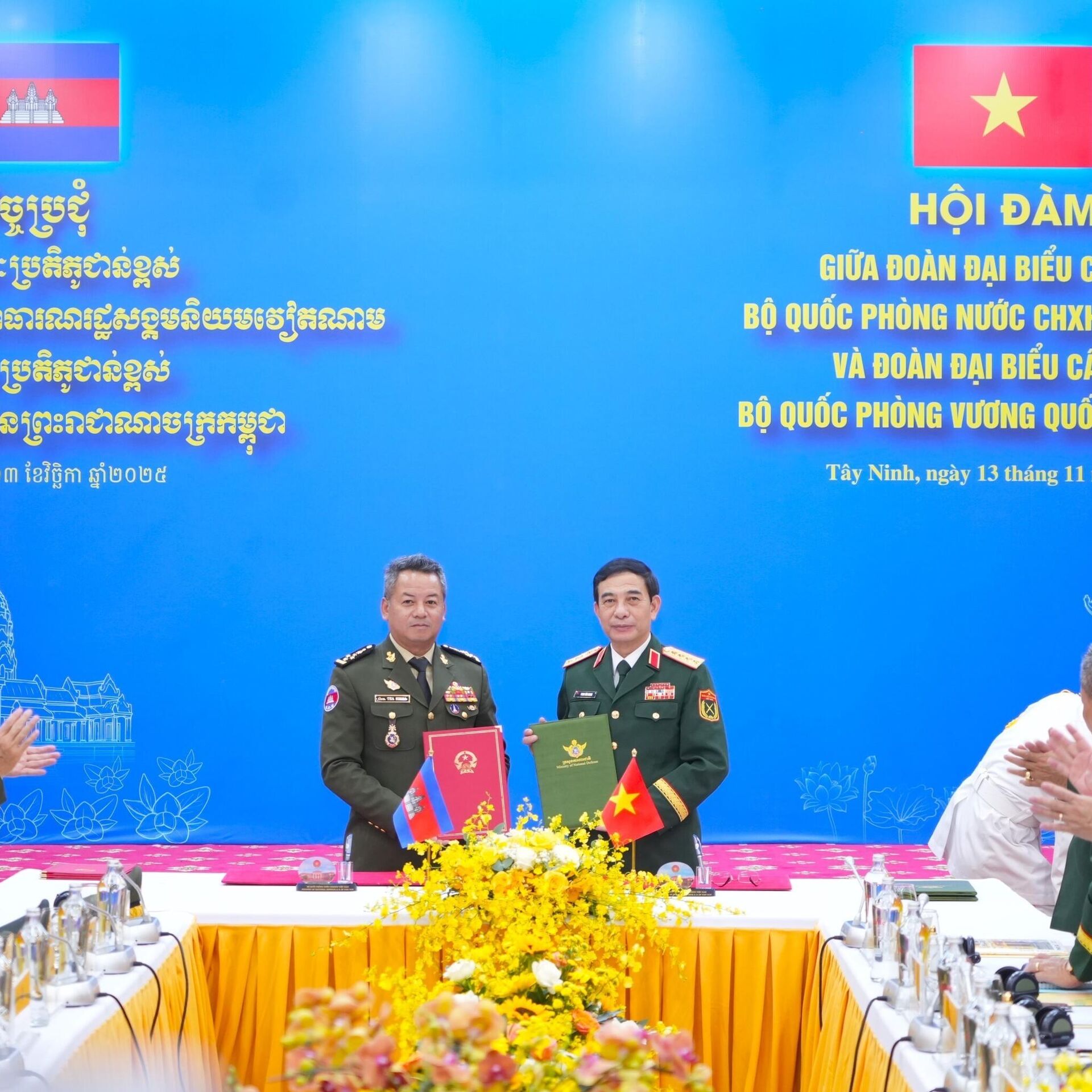 Trong khuôn khổ Giao lưu hữu nghị quốc phòng biên giới Việt Nam – Campuchia lần thứ hai, trưa 13/11 tại tỉnh Tây Ninh, Đại tướng Phan Văn Giang – Ủy viên Bộ Chính trị, Phó bí thư Quân ủy Trung ương, Bộ trưởng Bộ Quốc phòng – đã có cuộc hội đàm với Đại tướng Tea Seiha, Phó thủ tướng kiêm Bộ trưởng Bộ Quốc phòng Campuchia.