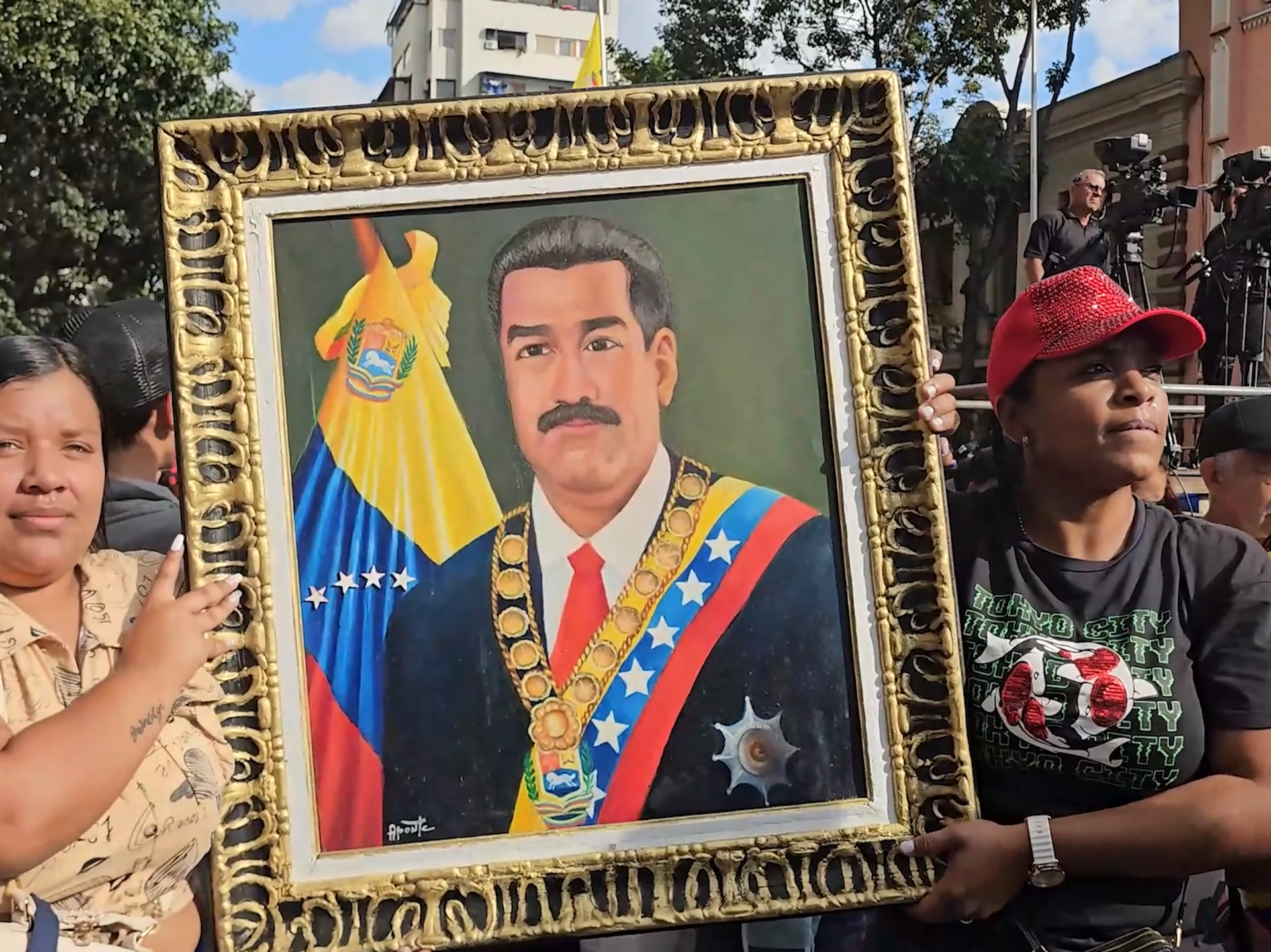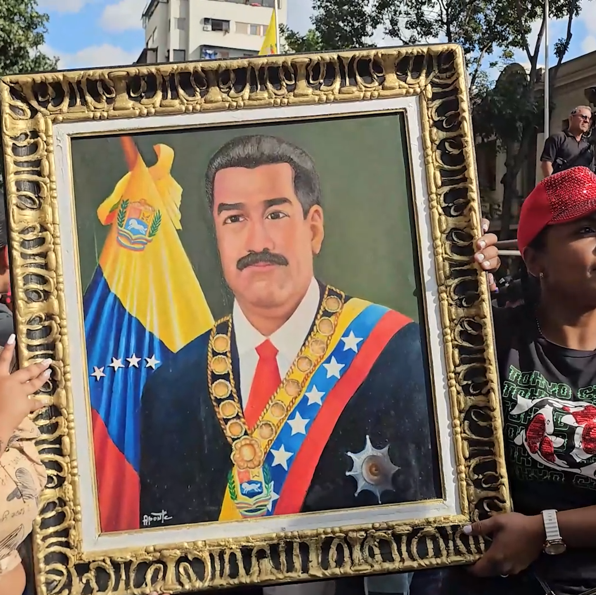 “Chúng tôi yêu cầu thả ngay lập tức tổng thống hợp hiến và tổng thống duy nhất của đất nước chúng tôi, người đồng chí - người anh em theo [Hugo] Chávez – Nicolás Maduro Moros”, - một người ủng hộ đã tuyên bố trước đám đông.