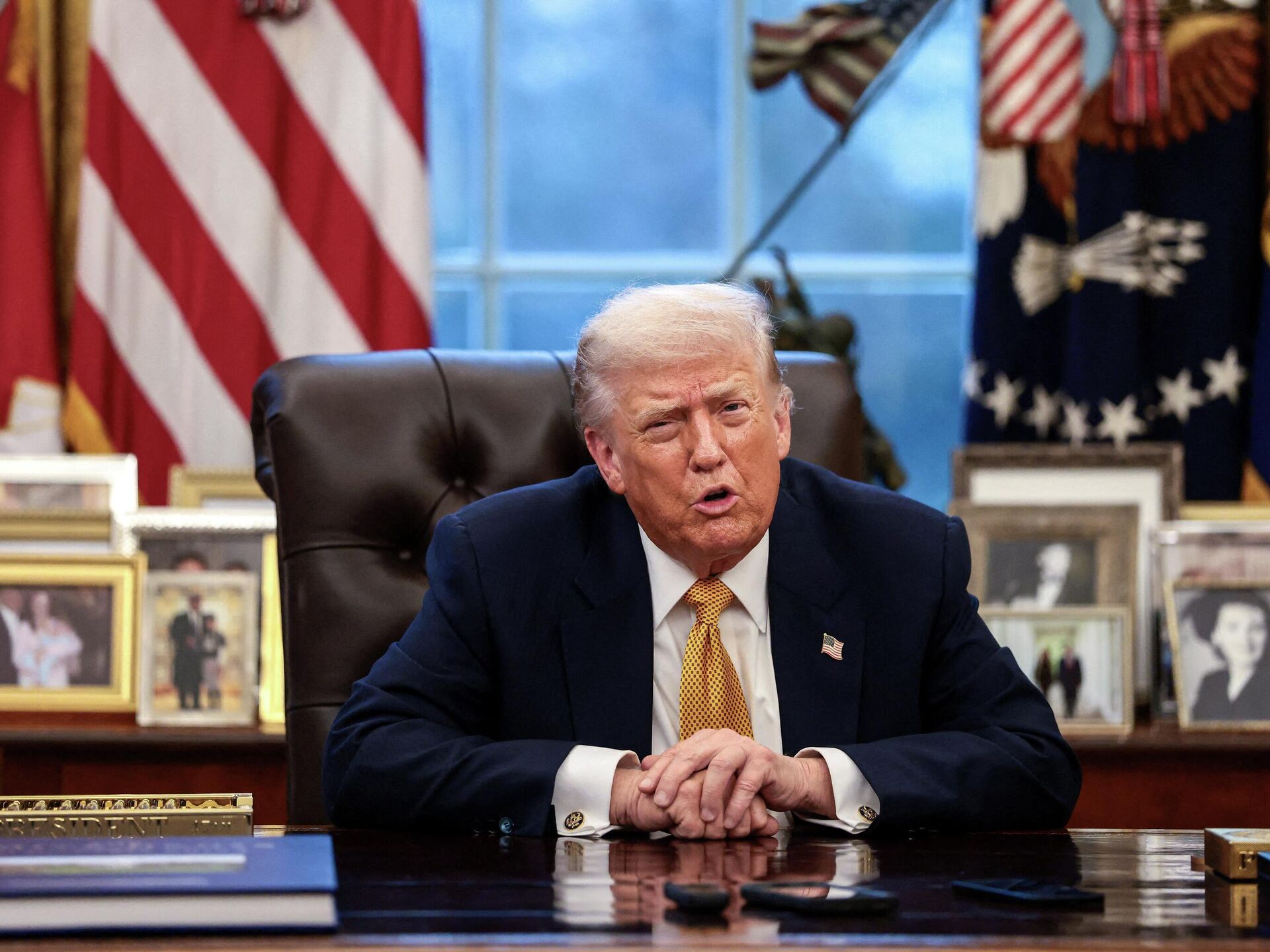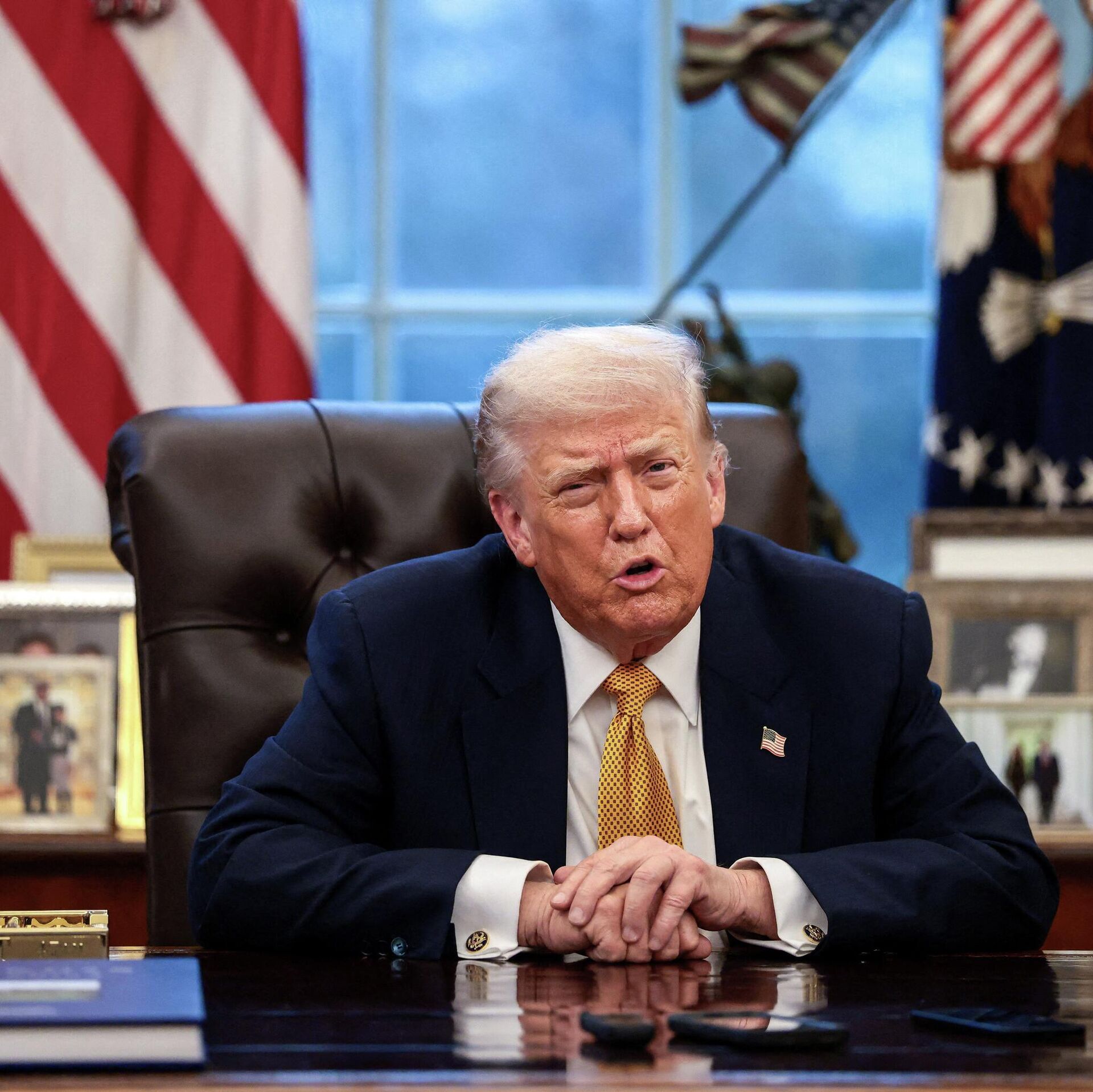 Tổng thống Hoa Kỳ Donald Trump tuyên bố ông có thể áp thuế nặng chống các nước tìm cách cản trở kế hoạch của ông về sáp nhập lãnh thổ Greenland vào Mỹ. 16.01.2026, Sputnik Việt Nam