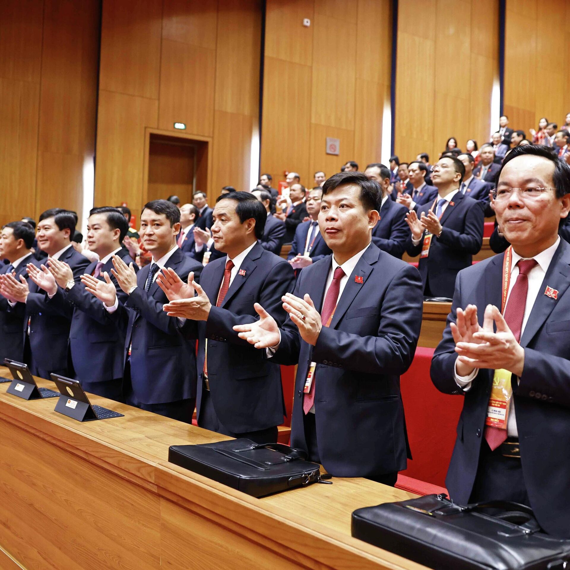 Đại hội cũng biểu quyết tán thành, nhất trí cao thông qua báo cáo thẩm tra tư cách đại biểu Đại hội XIV của Đảng do Ban Thẩm tra tư cách đại biểu trình. Theo báo cáo này, toàn bộ 1.586 đại biểu được triệu tập dự Đại hội đều đủ tư cách đại biểu Đại hội.