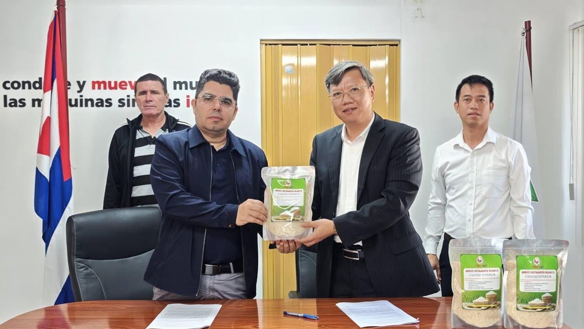Tại sự kiện, đại diện hai bên đã ký biên bản giao nhận 250 tấn gạo. Đây là lô gạo đầu tiên Việt Nam chuyển giao cho Cuba trong năm 2026 theo thỏa thuận song phương. Sản phẩm được sản xuất từ giống lúa lai CT16, có năng suất trên 7 tấn/ha, hiện đang được AgriVMA canh tác trên diện tích hơn 1.000ha tại huyện Los Palacios, tỉnh Pinar del Río.