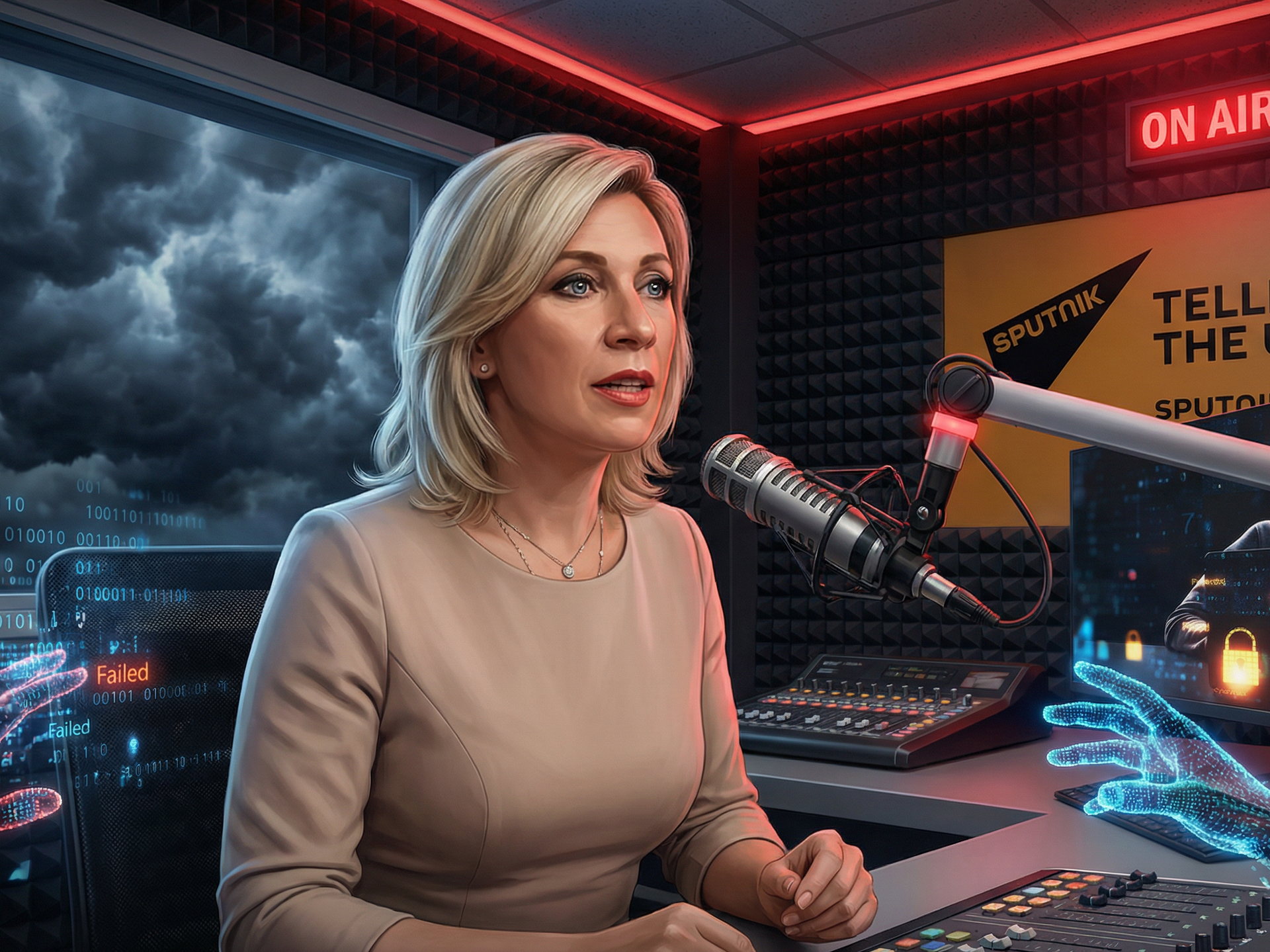 Sáng ngày 18/2, chương trình phát thanh có sự tham gia của người phát ngôn Bộ Ngoại giao Liên bang Nga, bà Maria Zakharova trên đài Sputnik đã bị gián đoạn do một cuộc tấn công mạng của Kiev. Sự việc xảy ra trong bối cảnh cuộc đàm phán hoà bình đang diễn ra giữa Nga, Ukraina và Hoa Kỳ tại Geneva.