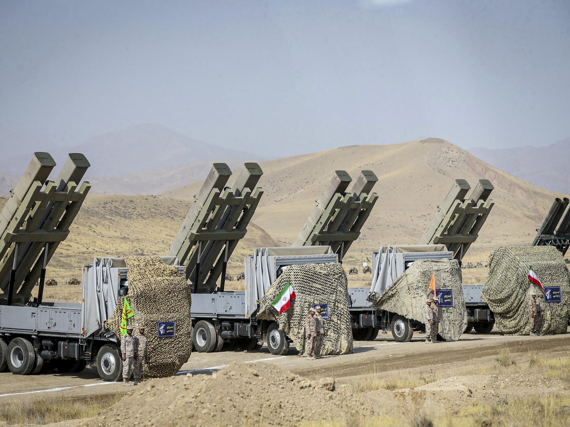 Bức ảnh này do lực lượng mặt đất của Vệ binh Cách mạng cung cấp vào thứ Hai, ngày 17 tháng 10 năm 2022, cho thấy các hệ thống tên lửa đang diễn tập ở tây bắc Iran. - Sputnik Việt Nam, 1920, 02.03.2026