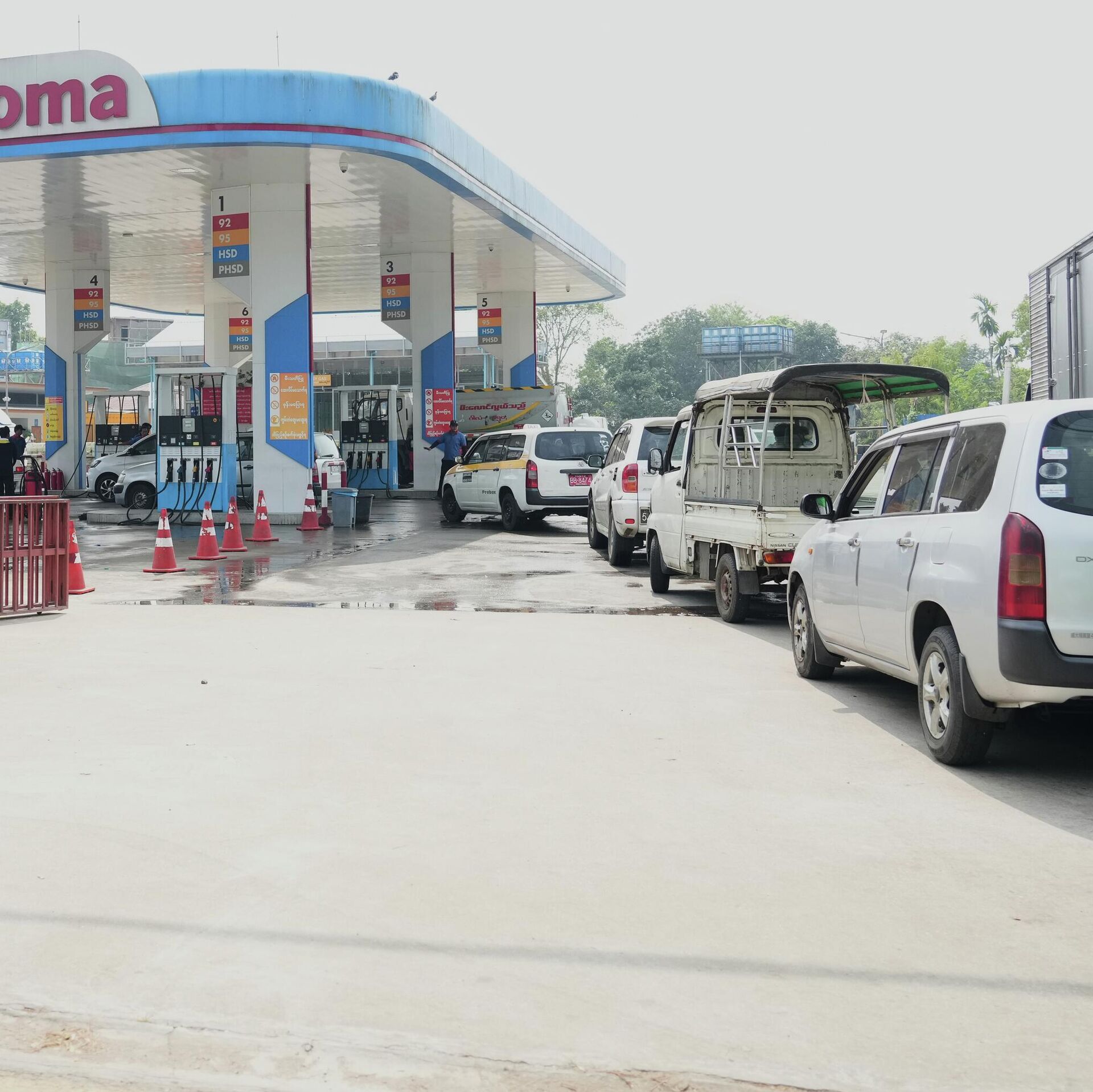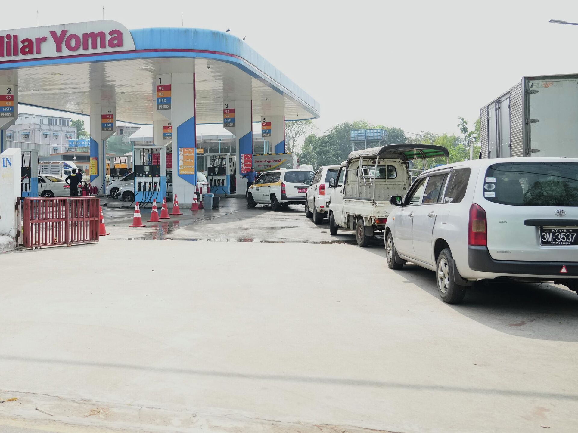 Một số trạm xăng đã áp đặt giới hạn mua nhiên liệu khoảng 10.000 kyat (≈4-5 USD) cho xe máy và 30.000 kyat (≈12-15 USD) cho ô tô.