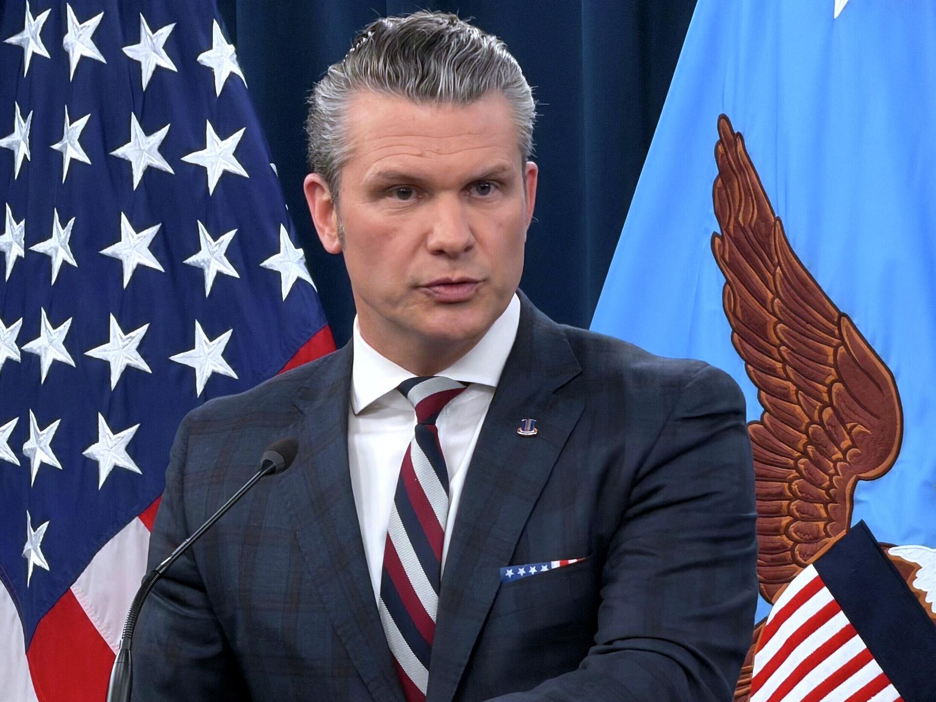 "Không có biện pháp nửa vời... chúng ta đang áp đảo kẻ thù bằng cách thể hiện sức mạnh kỹ thuật và quân sự vượt trội. Chúng ta sẽ không rút lui cho đến khi kẻ thù bị đánh bại hoàn toàn và dứt điểm", ông Hegseth nói trong cuộc họp báo.
