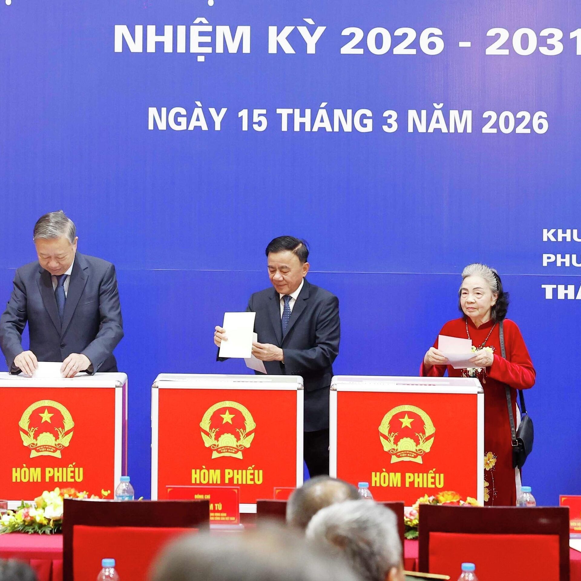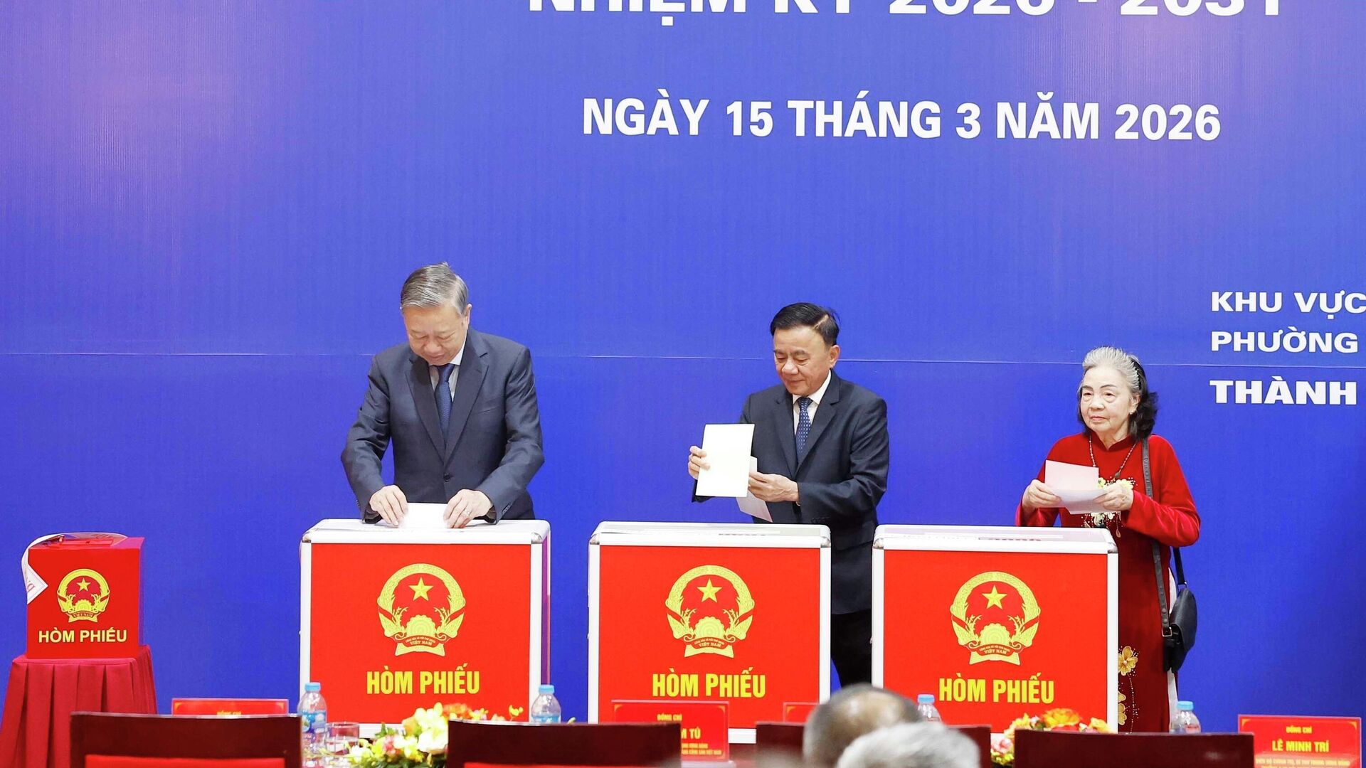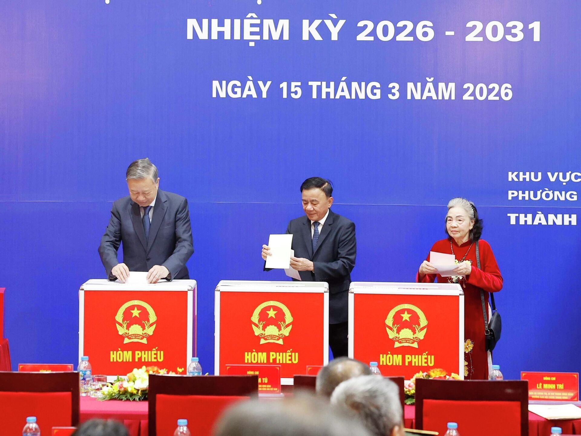 Tổng Bí thư Tô Lâm bỏ phiếu bầu cửTrong không khí rộn ràng, phấn khởi của Ngày Bầu cử - ngày hội toàn dân, Tổng Bí thư đã thực hiện quyền và nghĩa vụ công dân, tham gia bầu cử đại biểu Quốc hội khóa XVI và đại biểu Hội đồng nhân dân các cấp nhiệm kỳ 2026-2031.Cùng đi với Tổng Bí thư có các Ủy viên Bộ Chính trị: Trần Cẩm Tú, Thường trực Ban Bí thư; Lê Minh Hưng, Bí thư Trung ương Đảng, Trưởng ban Tổ chức Trung ương; Lê Minh Trí, Bí thư Trung ương Đảng, Trưởng ban Nội chính Trung ương; Phạm Gia Túc, Bí thư Trung ương Đảng, Chánh Văn phòng Trung ương Đảng; Nguyễn Duy Ngọc, Bí thư Thành ủy Hà Nội;Ngoài ra, còn có ông Phan Đình Trạc, nguyên Ủy viên Bộ Chính trị khóa XIII, nguyên Trưởng ban Nội chính Trung ương và nhiều Ủy viên Trung ương Đảng cùng đông đảo cử tri Thủ đô tham gia bỏ phiếu.Trong bầu không khí trang nghiêm và phấn khởi của sự kiện chính trị trọng đại, Tổng Bí thư Tô Lâm có mặt từ rất sớm để thực hiện quyền bầu cử của mình. Ông thân mật trò chuyện với các cử tri trước khi cùng tham dự lễ khai mạc tại hội trường. Tại đây, Ban tổ chức đã phổ biến thể lệ bầu cử, nội quy phòng bỏ phiếu và tiến hành kiểm tra hòm phiếu chính, hòm phiếu phụ trước sự chứng kiến của các đại biểu và cử tri, bảo đảm đầy đủ các thủ tục theo quy định.Ngay sau nghi thức khai mạc, Tổng Bí thư Tô Lâm cùng Thường trực Ban Bí thư Trần Cẩm Tú, các Ủy viên Bộ Chính trị, Ủy viên Ban Bí thư, Ủy viên Trung ương Đảng, lãnh đạo Trung ương và lãnh đạo thành phố đã bỏ những lá phiếu đầu tiên.Tiếp theo, đông đảo cử tri tại địa bàn phường Ba Đình lần lượt thực hiện quyền và nghĩa vụ công dân của mình, tham gia bầu cử để lựa chọn các đại biểu đại diện cho ý chí và nguyện vọng của nhân dân.Thực hiện quyền làm chủ của nhân dânSau khi hoàn thành việc bỏ phiếu, trao đổi với các phóng viên báo chí, Tổng Bí thư Tô Lâm bày tỏ sự phấn khởi khi được trực tiếp thực hiện quyền bầu cử và chứng kiến đông đảo cử tri tham gia ngày hội dân chủ. Ông cho biết công tác chuẩn bị cho cuộc bầu cử đã được tiến hành rất sớm và chu đáo ở tất cả các khâu, tạo điều kiện thuận lợi để mọi cử tri, trong bất kỳ hoàn cảnh nào, đều có thể bày tỏ ý kiến của mình thông qua lá phiếu.Theo Tổng Bí thư, cuộc bầu cử lần này diễn ra sau thành công của Đại hội XIV của Đảng, khi những chủ trương, định hướng và tầm nhìn phát triển đất nước đã được xác định rõ ràng và nhận được sự ủng hộ mạnh mẽ của nhân dân, cán bộ và đảng viên.Tổng Bí thư khẳng định đây là ngày hội lớn của đất nước, thể hiện quyền tự do và quyền làm chủ trực tiếp của nhân dân trong việc lựa chọn những người có đủ uy tín và năng lực để gánh vác công việc chung của quốc gia và địa phương, góp phần thúc đẩy đất nước phát triển, bảo đảm chủ quyền và toàn vẹn lãnh thổ, bảo vệ Tổ quốc bền vững.Ông cũng nhấn mạnh mục tiêu chung là xây dựng và phát triển đất nước theo hướng nhanh, bền vững và ổn định, đồng thời không ngừng nâng cao đời sống vật chất và tinh thần của nhân dân. Đây cũng là mong muốn và kỳ vọng của nhân dân, những người đã trao niềm tin và trách nhiệm cho các đại biểu được bầu chọn.Nhân dịp này, Tổng Bí thư Tô Lâm gửi lời cảm ơn tới các cơ quan báo chí và truyền thông đã tích cực tuyên truyền, góp phần lan tỏa tinh thần đại đoàn kết toàn dân tộc, tạo nên không khí phấn khởi trong ngày hội bầu cử đại biểu Quốc hội và Hội đồng nhân dân các cấp trên cả nước.