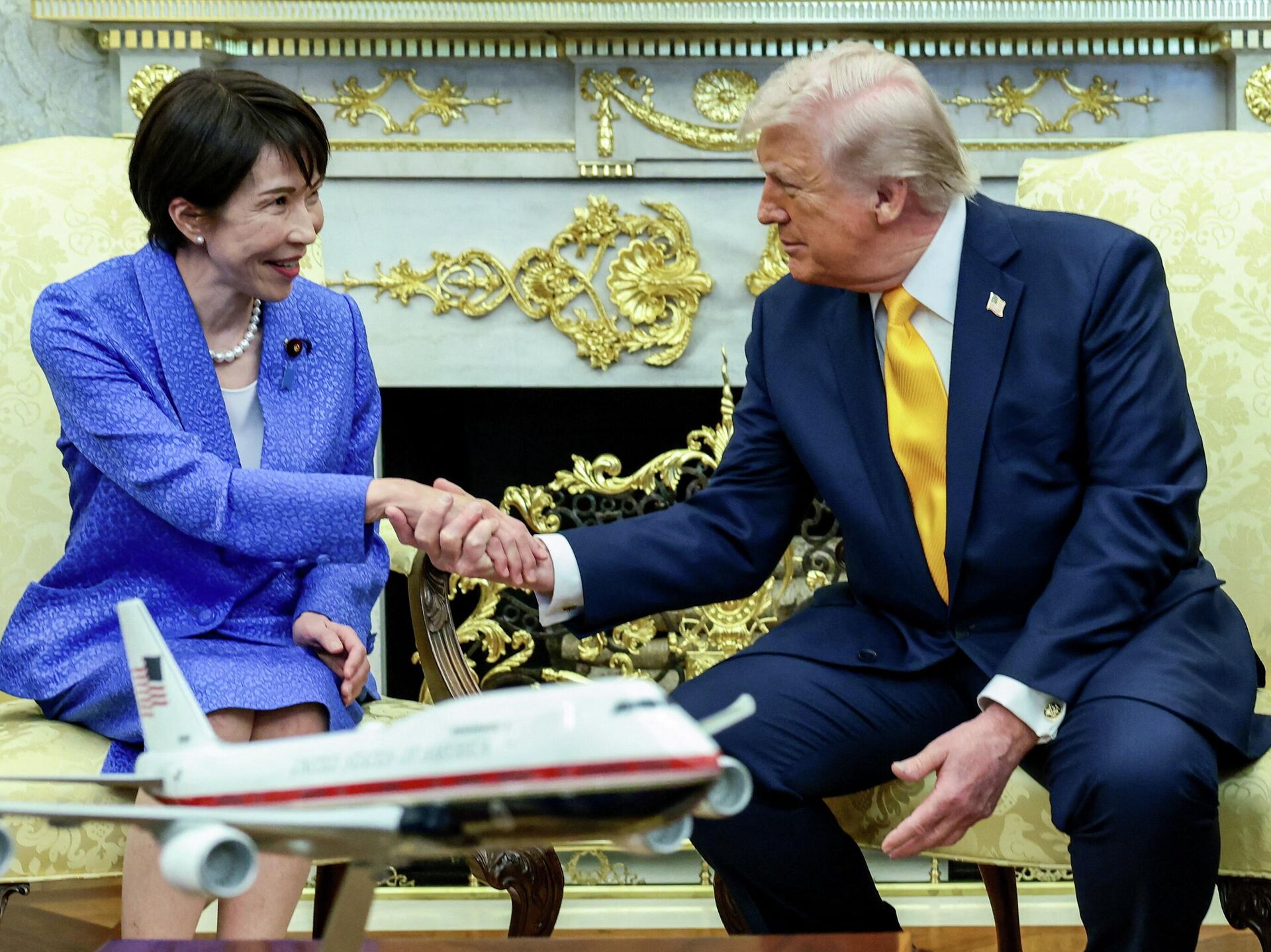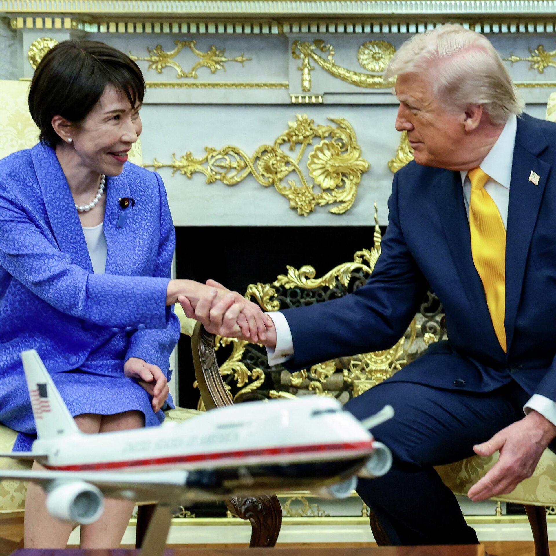 © REUTERS Evelyn HocksteinTổng thống Mỹ Donald Trump bắt tay Thủ tướng Nhật Bản Sanae Takaichi tại Phòng Bầu dục của Nhà Trắng ở Washington, Mỹ
