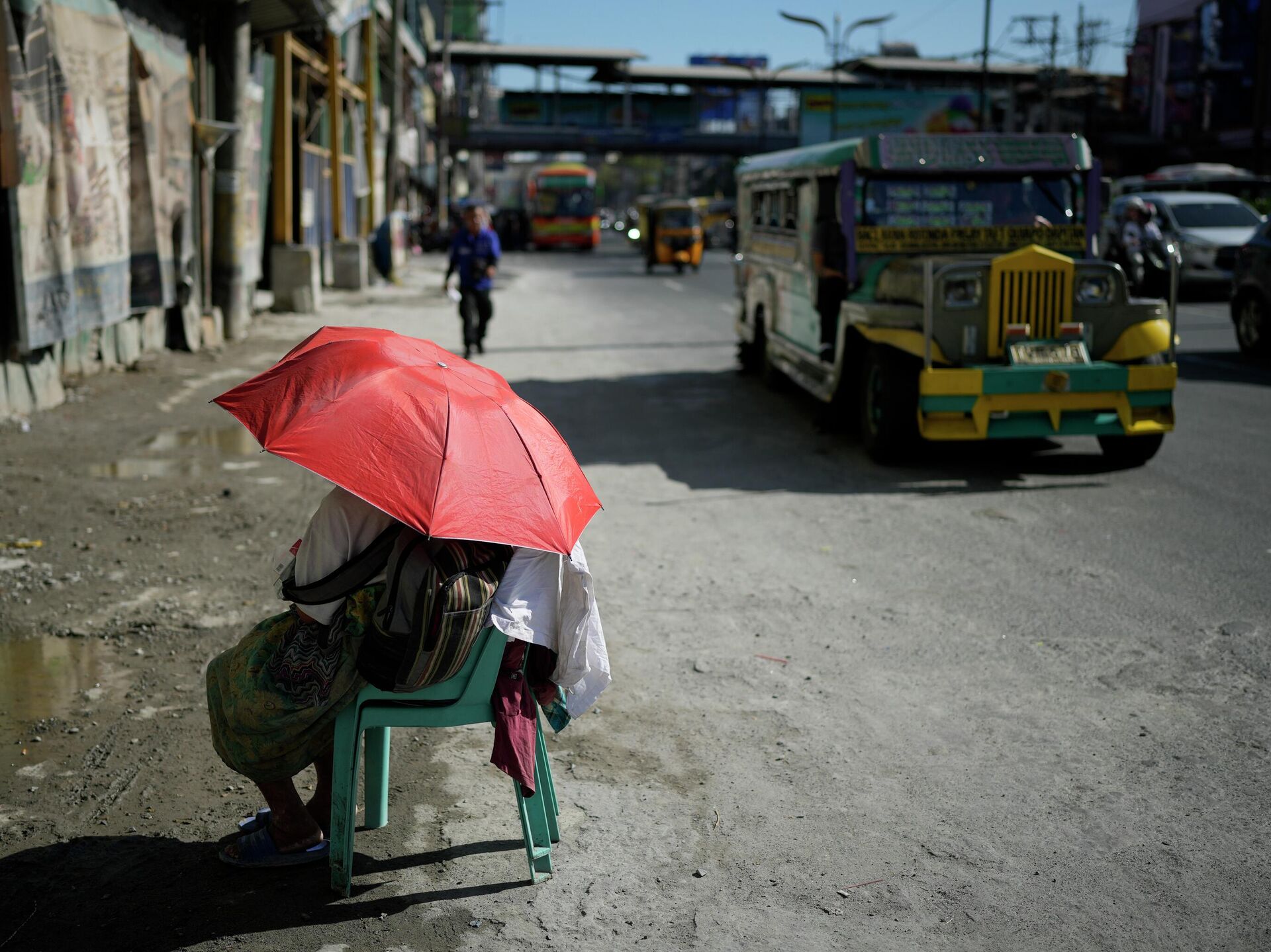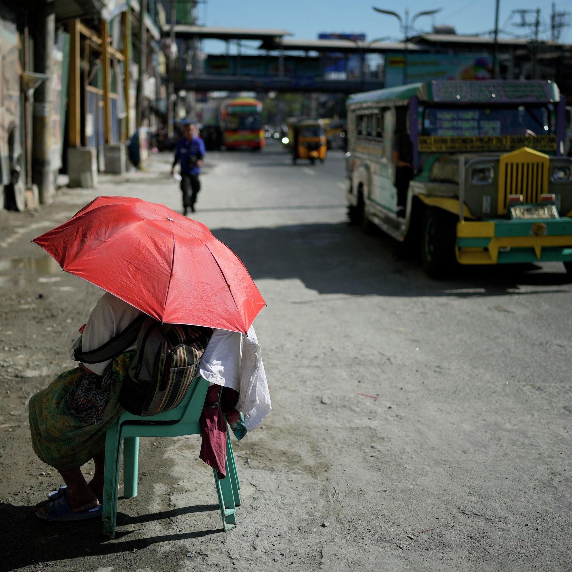 Một người bán hàng rong dùng ô che nắng trên đường phố ở Manila, Philippines. - Sputnik Việt Nam, 1920, 21.04.2026