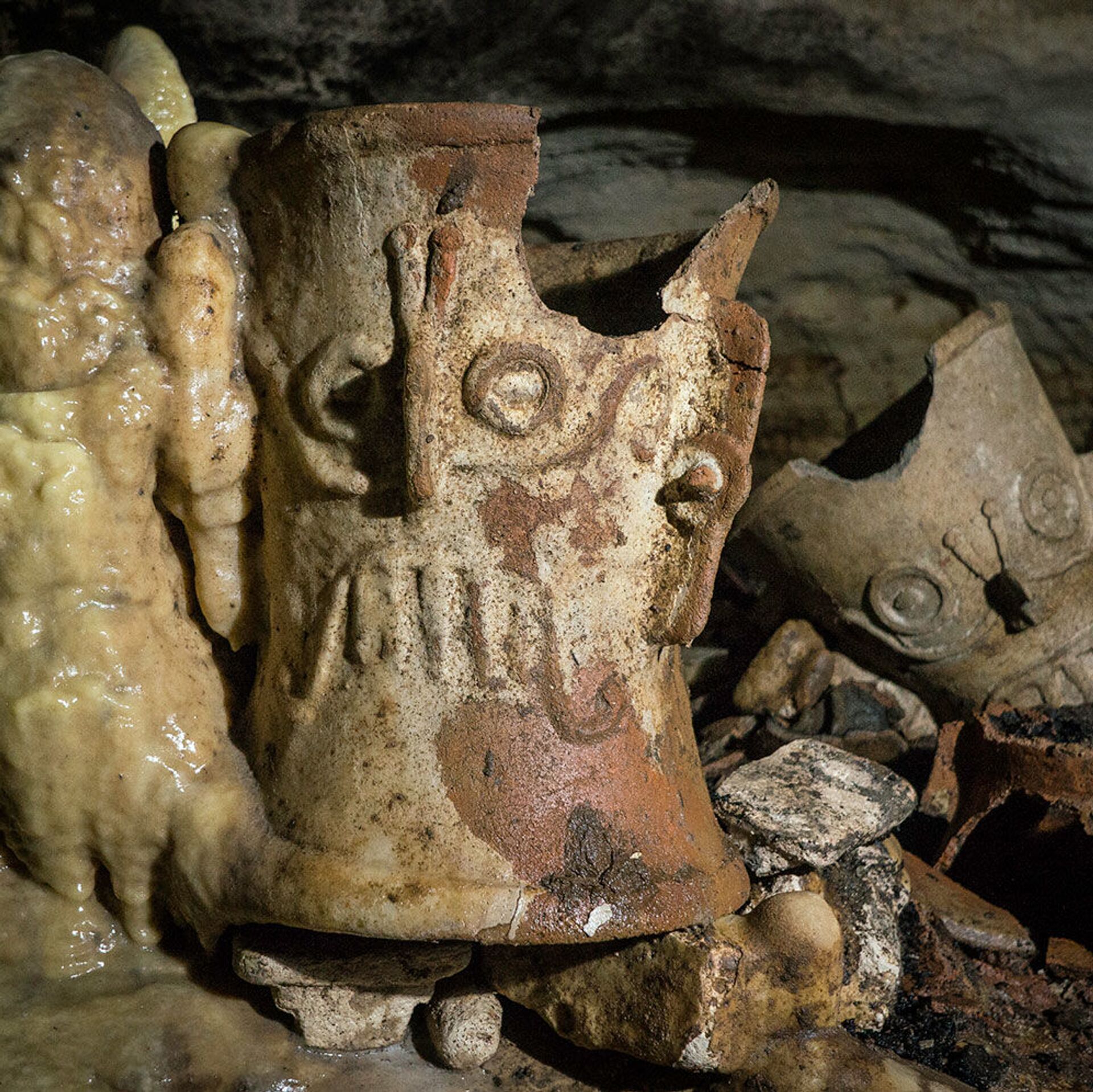 Các hiện vật của nền văn minh Maya từ hang Balamku gần Chichen Itza, Mexico. - Sputnik Việt Nam, 1920, 28.04.2026